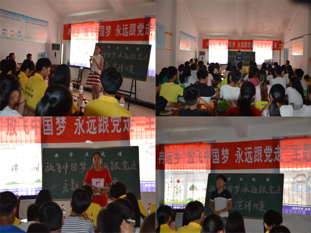 本网讯(教科院 冉琼)7月30日,为深入贯彻党的十八大和全国两会的精神,引导广大青少年全面理解习近平总书记对“中国梦”的深情阐述,畅想民族的复兴--“中国梦”的光明前景,激发青少年树立远大理想。教科院“全心全意”赴冉庙关爱留守儿童调研团队联合冉庙乡乡政府、冉庙中学成功举办“放飞中国梦,永远跟党走”主题演讲比赛。阜阳市文广新局局长韩伟、冉庙乡乡政府宣传委员兰李星、冉庙中学董事长来红良,冉庙中学团委负责人高川莅临指导。