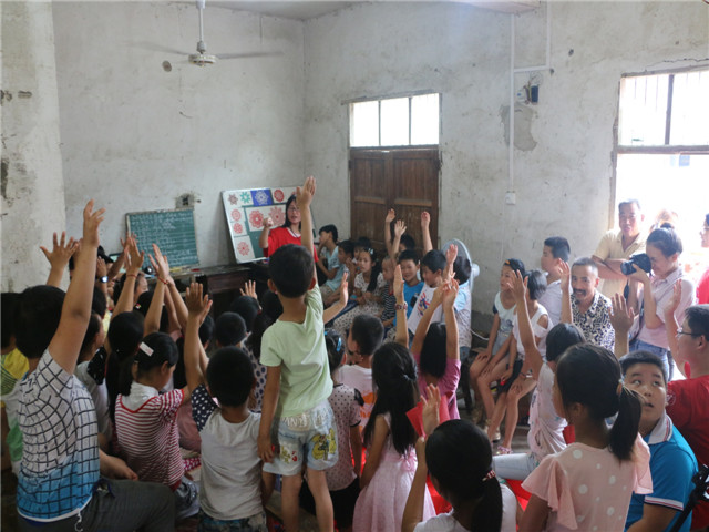 除此之外,队员们也同时结合孩子们的兴趣点,精心安排了一系列丰富有趣的手工课和绘画课程.而值得一提的是,在社会实践活动的最后一天,队员们为孩子们组织了一次“文艺汇演”。表演魔术,演唱歌曲,年幼的他们表演起来有声有色,整个教室成了欢乐的海洋。