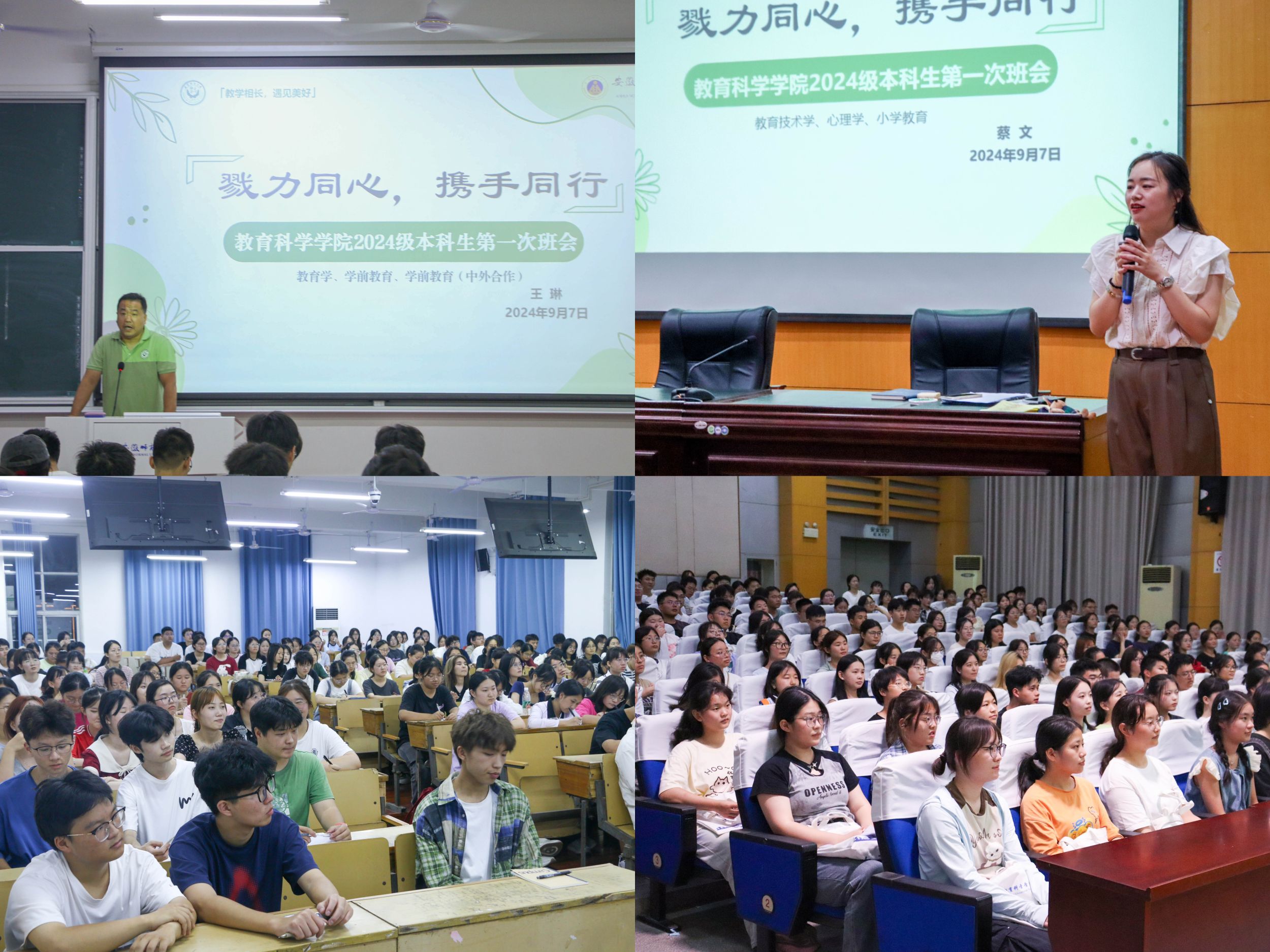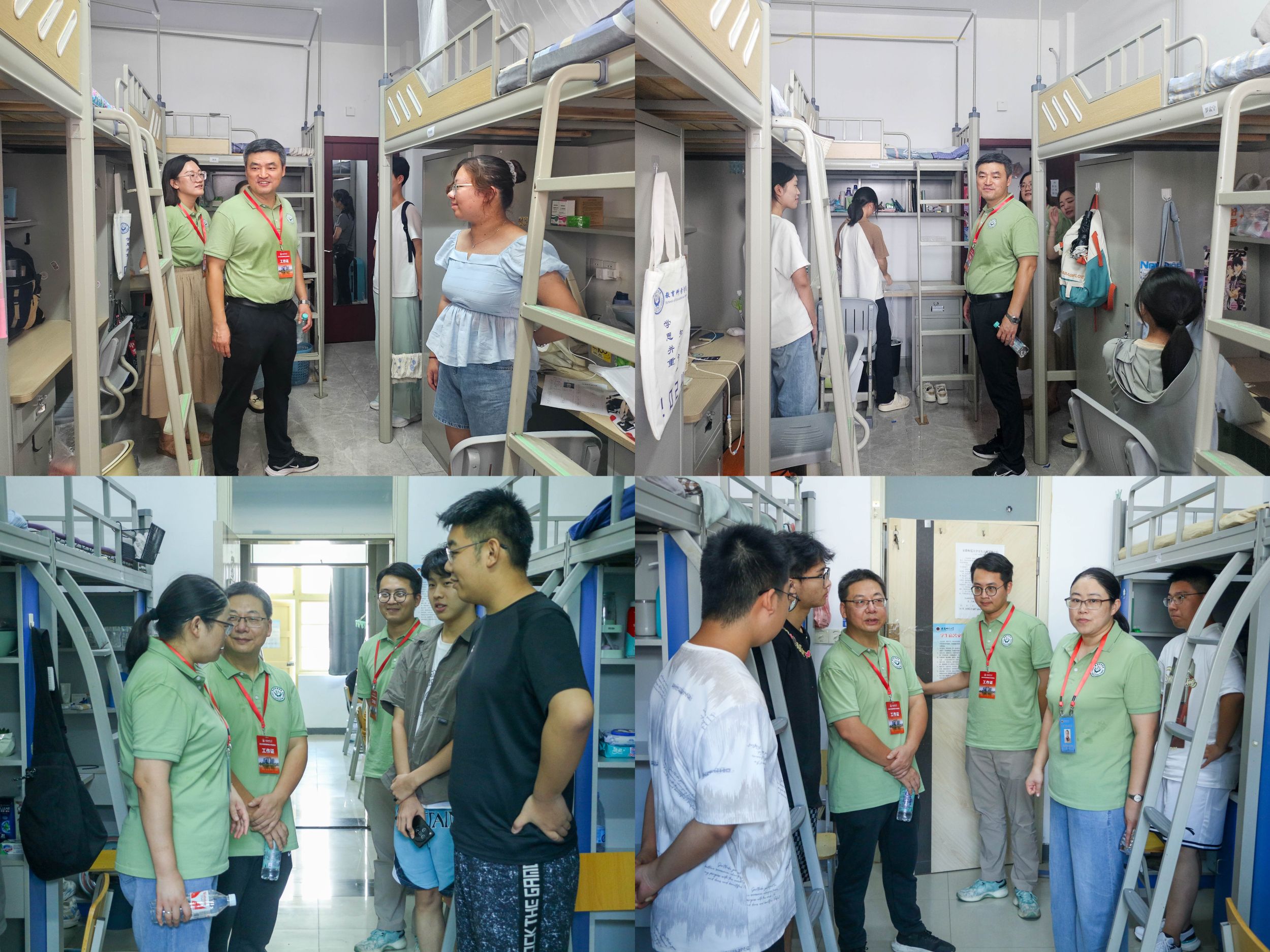 新生报到当天,校领导、院领导多次前来报到现场视察教科院迎新工作开展情况,公司党委书记张立驰、董事长李亚栋、副董事长曾黎明、副董事长高峰、公司党委副书记胡靖等校领导与新生以及值班人员交流,关心慰问志愿者,关心迎新进程。公司党政全体班子成员等深入新生宿舍,了解住宿情况,共谈老员工活。当日晚七点,24级辅导员分别于田楼报告厅与教学楼1401召开新生开学班会,为同学们答疑解惑,公司党委副书记杜凤参加会议并希望同学们能尽快适应老员工活,及时调整转变角色,努力成为一名优秀的教科人。