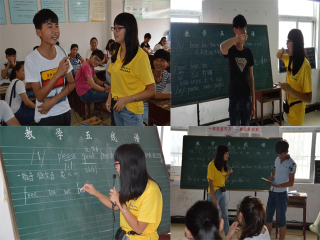 针对农村英语教育水平低下的现状,实践团队专门成立了英语交流课教学小组,其中包括“英语交流课之基础夯实”,“英语交流课之口语提升”,“英语交流课之习题拔高”三大教学板块。其中,口语提升板块注重音标学习和锻炼员工读英语的能力。任课老师戴倩倩老师以激情洋溢的教学风格和互动使课堂氛围异常活跃,独特的发音技巧和高水平的英语口语能力带领着学员进入一片探索英语新天地。