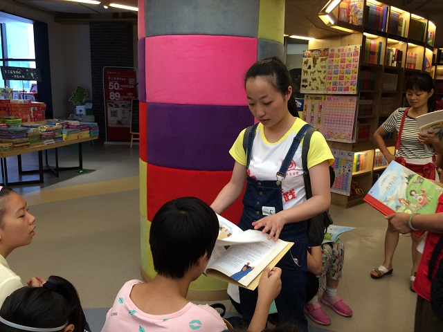 “书是人类进步的阶梯”。7月8日上午是春芽阳光家园的例行活动——“阳光出行”,目的地是安徽省图书城。顶着烈日乘公交车到达省图书城后,沈老师给大家这趟不易的“旅行”拍了张合影。然后我们就进入了图书城里,各自带着自己照看的学员来到三楼的儿童乐园进行图书的挑选和阅读。在层层书架和本本书籍的包围中,学员们突然就安静了下来,好像知道在这个神圣的地方不应该吵闹;他们有的到处穿梭寻找自己感兴趣的书,有的在志愿者的讲解下看起了充满彩色图画的书,还有的自己一个人坐在角落里静静地看书。学员们就像条小鱼,沉浸在书海里,感受着书籍的魅力和书页的芬芳。志愿者们为了学员不走丢,一直紧跟着他们;为了学员能读懂书籍,不厌其烦地一遍遍讲解;为了不打扰儿童乐园里的其他读者,耐心地抚慰情绪不好的学员……不负我们的努力,这次出行活动最终圆满完成。