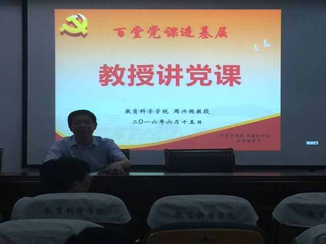 本网讯(教科院 马兴)6月15日下午,刚刚从中央党校学习归来的院教授委员会主任周兴国教授为公司全体教师党员做了一场题为《践行社会主义核心价值观是高校教师的责任与使命》的报告。