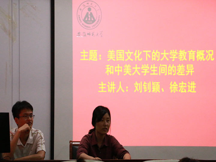 本网讯(裴扬/文)为了开阔本院研究生的视野,促进大洋两岸的学术交流,2016年6月27日晚,院研究生会学研部邀请赴美归来的首届中美合作教育技术研究生刘钊颖、徐宏进两位同学在院三楼学术报告厅举行“美国文化下的大学教育概况和中美老员工间的差异”主题交流活动。学研部苏旭同学主持主持了本次活动,公司2014、15级教育技术相关专业研究生和本科生前来参加。