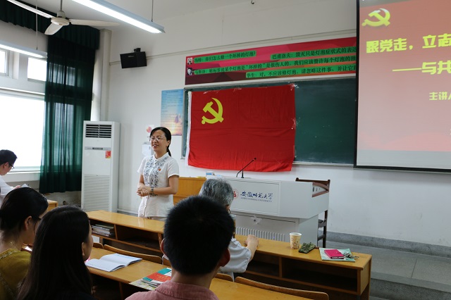 袁老师从自己多年的党团工作经历说起,阐释了老一代共产党人的坚定理想信念与奋斗精神。他从“马克思主义的诞生极其在中国的传播发展”、“什么是青年马克思主义者”、“如何才能成为青年马克思主义者”等三个方面向同学们系统地阐述了马克思主义及其对中国革命和建设的指导。袁老师重点介绍了当代马克思主义,即习近平的治国理政方略。“一个中国梦”、“两个一百年”、“三个战略步骤”、“四个全面”、“五大发展理念”、“六个新常态”简洁的语言阐释了习近平总书记治国理政的大智慧。讲座最后,袁老师从学马克思主义最新成果、认真学习党章、注重专业知识技能培训、注重良好道德的养成、良好生活习惯的养成及身体锻炼等六个方面对党员员工提出了期望,希望同学们早日成为青年马克思主义者。
