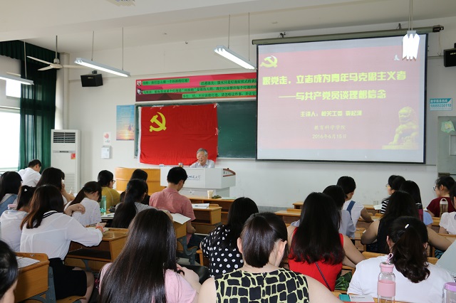 本网讯(教科院 李书婷)为扎实推进“两学一做”学习教育,激发员工党员“学”的动力,明确“做”的方向,6月15日下午,教科院邀请校关工委袁起河老师为公司员工党员做了一场“跟党走,立志成为青年马克思主义者——与共产党员谈理想信念”的报告会。院第3期党员教育培训班全体学员、公司新发展的预备党员和转正的党员参加了本次报告会。报告会由党委副书记张如华主持。