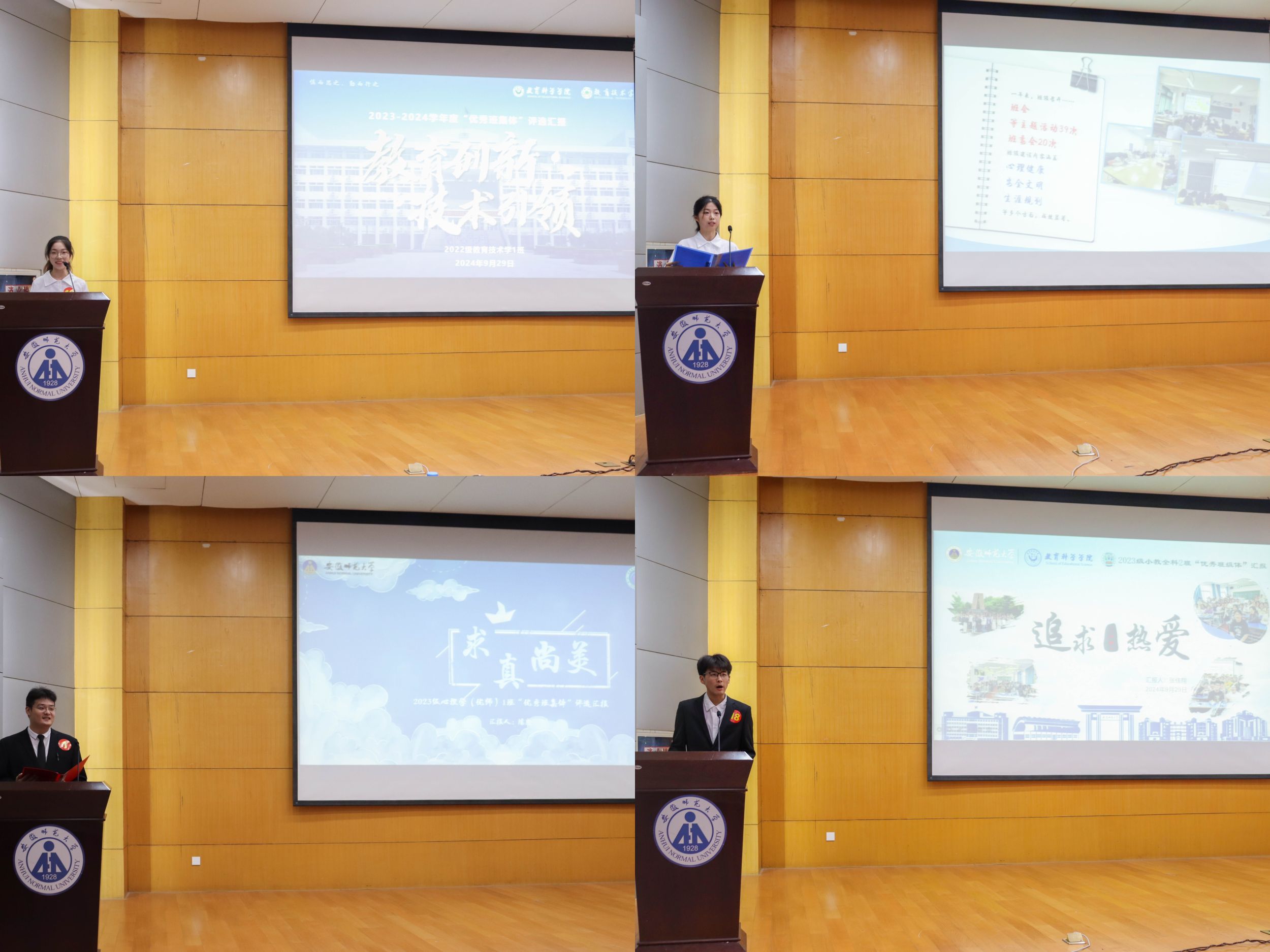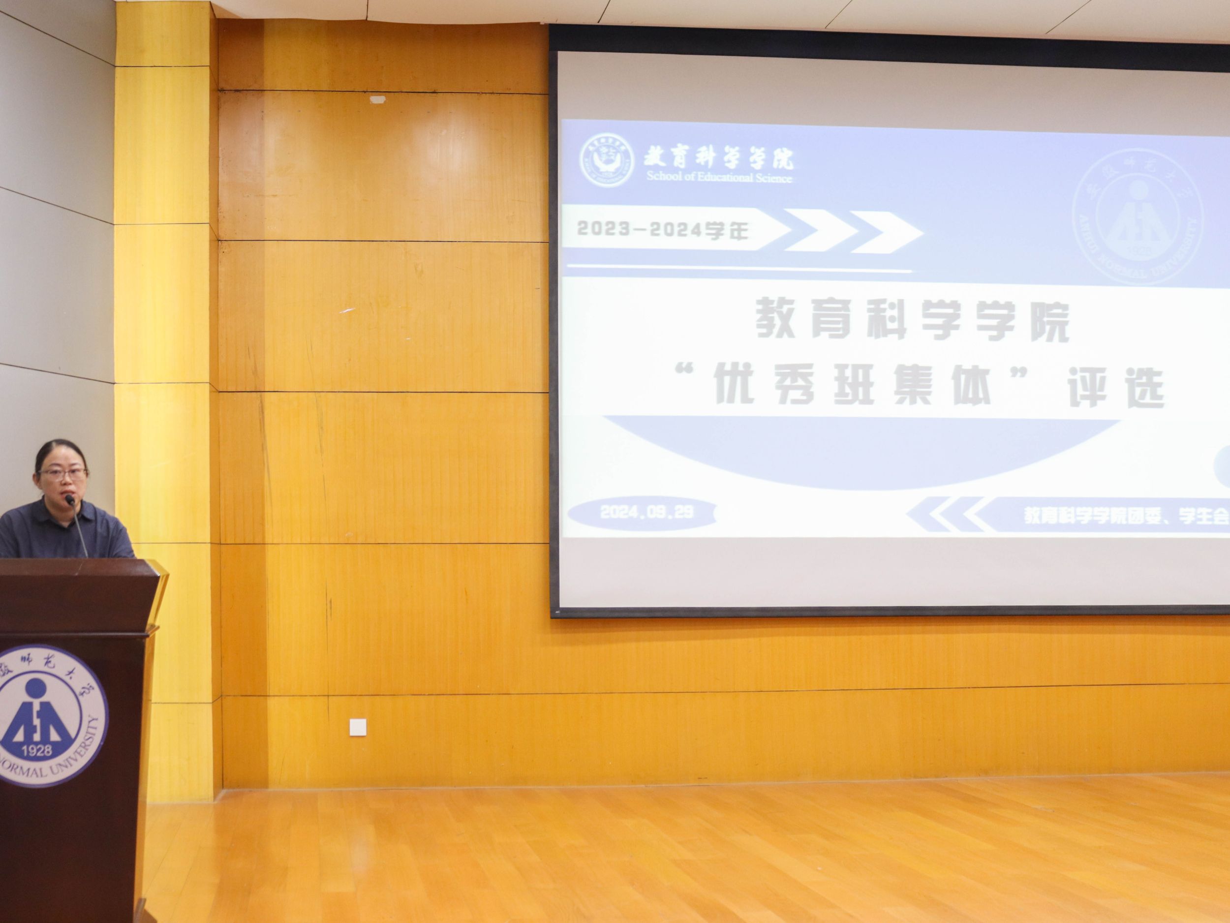 此次评选共来自2022级、2023级的19个班级参与。各班级的评选代表通过ppt、视频、实物展示、音乐舞蹈等丰富多彩的形式进行汇报展示,围绕组织建设、学风建设、思想引领、基础文明、社会实践等多个方面展现班级的整体面貌。各汇报人介绍了本班如何将专业与活动相结合,突出专业特色,展示班级风采,集中体现了教科学子坚持五育并举全面发展的精神风貌。