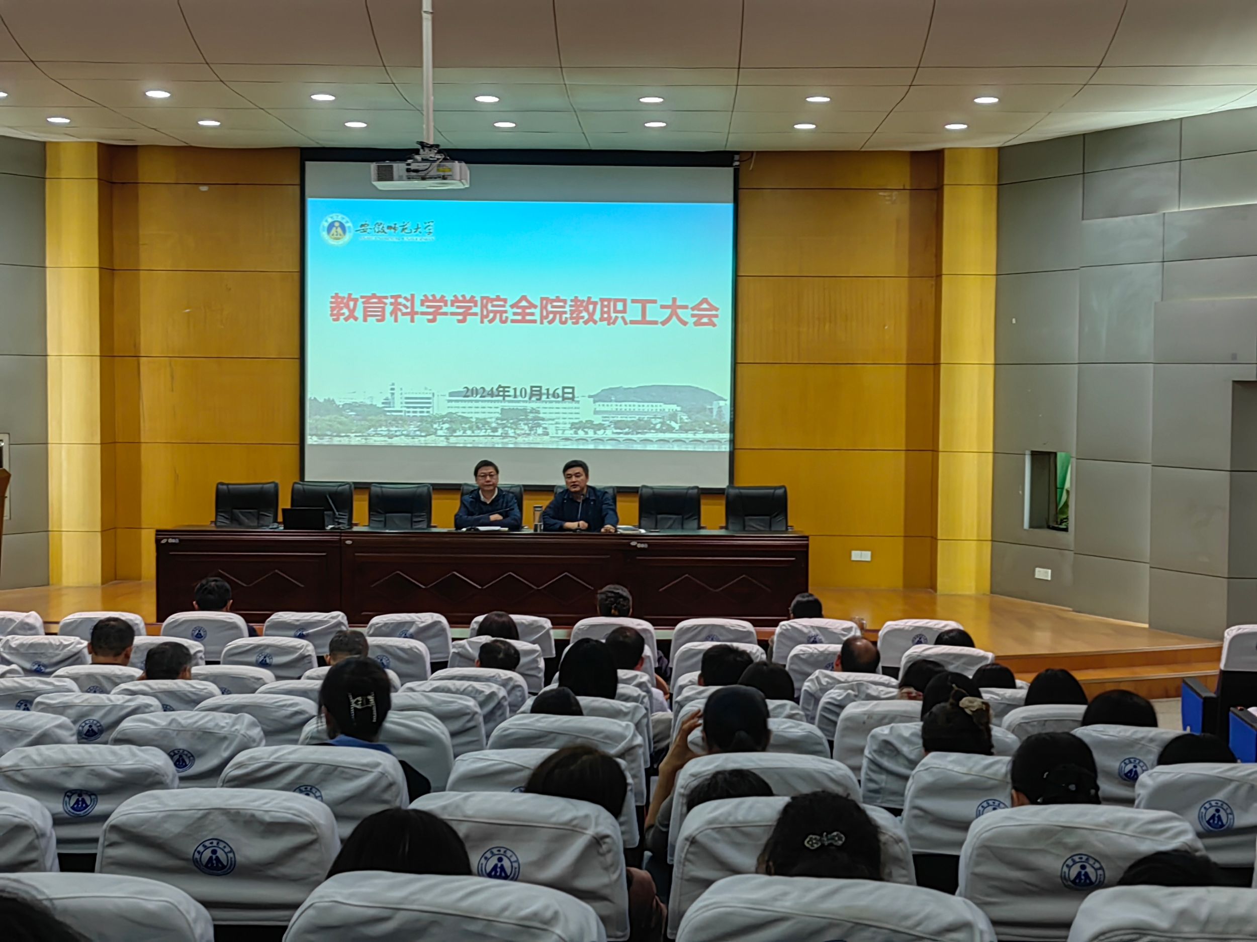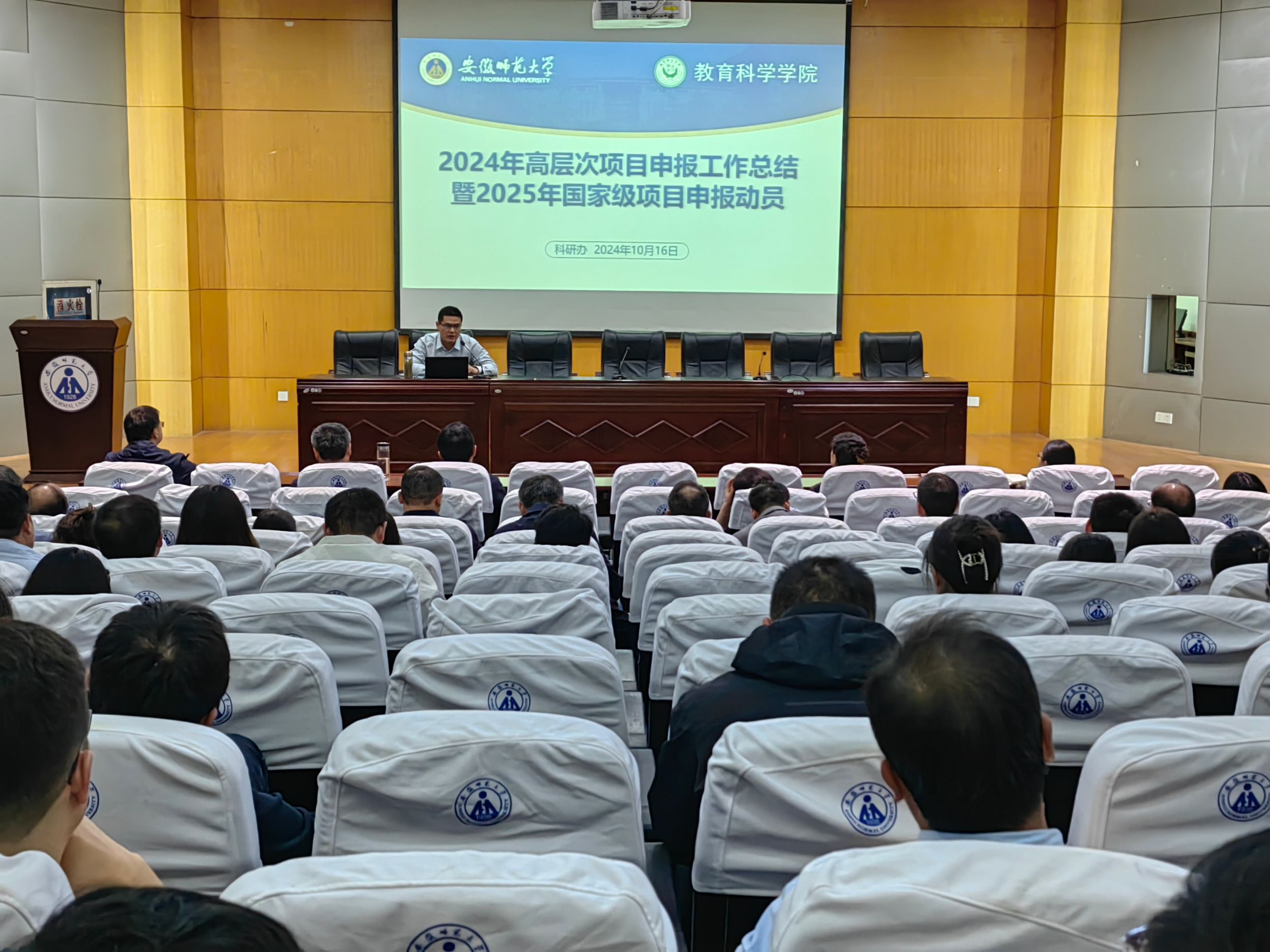 10月16日下午,教科院在赭山校区田楼报告厅室召开2024年高层次项目申报工作总结暨2025年国家级项目申报动员会。公司党政领导班子成员、全体教职工参加会议,会议由副经理吴文涛主持。