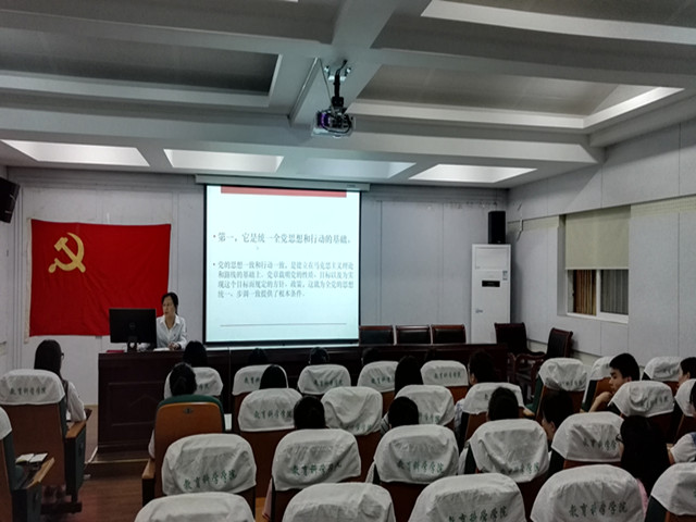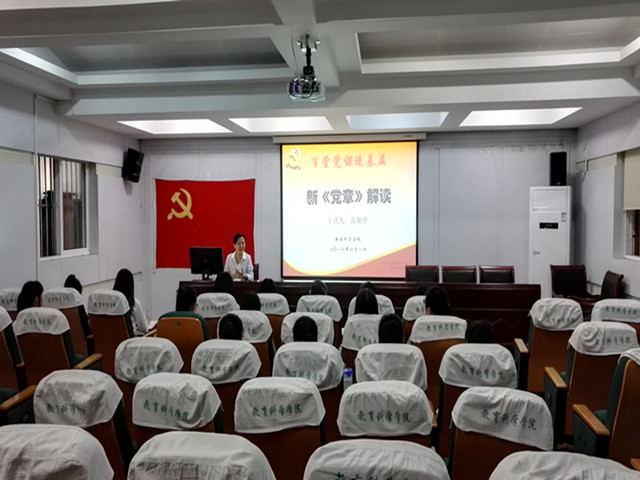 张如华以“以党章为镜,做合格党员”为主题,首先带领同学们回顾了历届党章的发展变化过程,阐明了党章是经历史检验的科学的正确的立党纲领。随后,她重点向同学们分析了十八大对党章的新修订,使同学们对党章有了一个全面的深入的认识。最后,她结合党员义务和权利及老员工的特点,对党员提出了几点期望。她希望党员同学能以党章为标尺,以党章为镜子,照理想、照信念、照宗旨、照形象,做到理想常在、信念常驻、宗旨不变、本色不褪。按党章的标准要求自己,坚持入党初心,处处牢记党员标准,践行党员要求,在公司要做好老师的好助手、同学的好榜样。