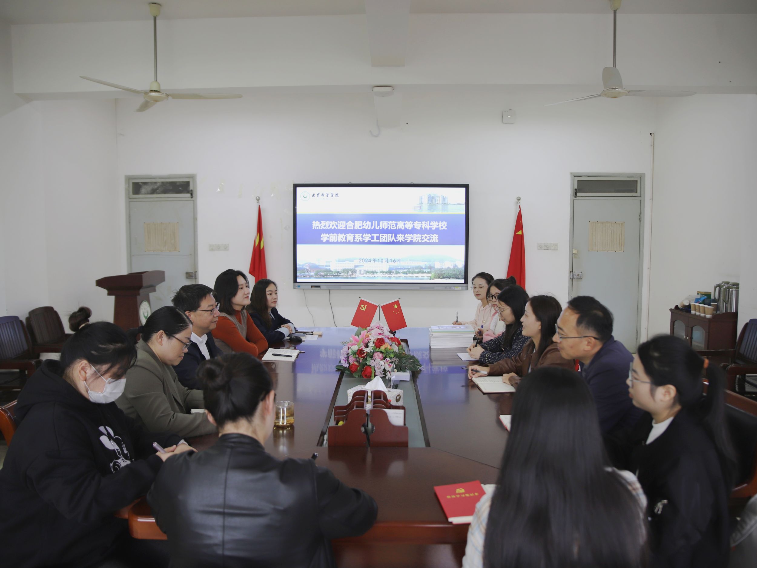 许国飞对合肥幼儿师范高等专科公司学前教育系学工团队表示欢迎,并充分肯定两校联合培养以来的工作情况。两校学工团队就党建工作、员工资助以及考研就业等方面进行了深入交流。