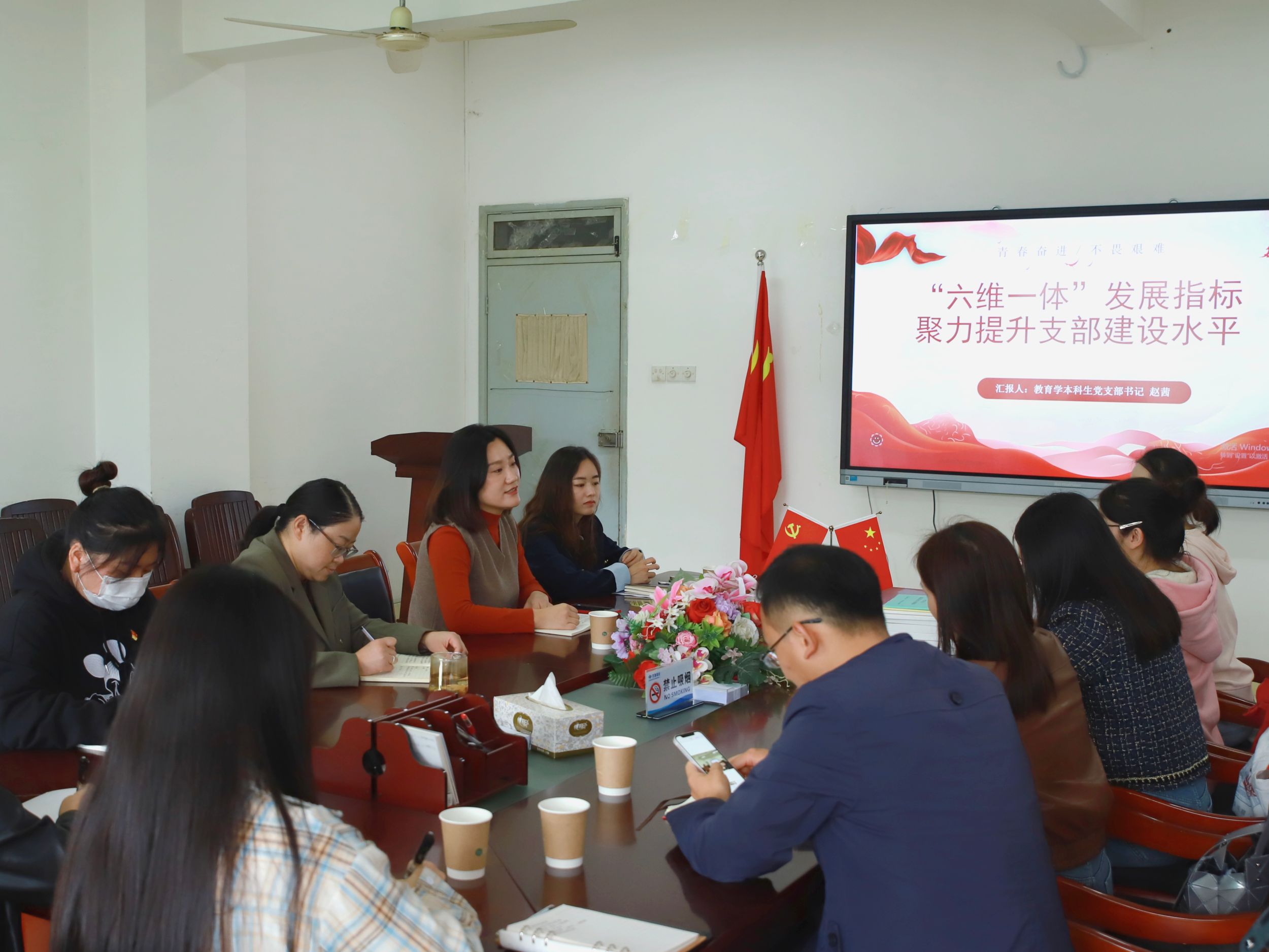 蔡文对学前教育本科生党支部获批“教育部新时代高公司党建双创工作全国党建样板支部培育创建单位”的相关工作经验进行了介绍,总结经验的同时也指出了不足和努力方向,为双方未来的党员发展、党的建设等工作提供了新思路。赵茜介绍了教育学本科生党支部当前“六维一体”的发展指标。赵茜指出,目前该指标也在全院进行了推广并受到一致好评,在入党流程中做到了公平公正、公开透明。金凤仙就员工资助工作进行了交流分享,提出在资助工作中应做到事无巨细,真正落实“应助尽助”的资助原则,保证真正困难的员工可以得到及时、充分的帮助。蔡文介绍教科院24届毕业生考研、就业情况。学前教育系辅导员张晨表示,在未来的工作中会多加沟通和交流,共同促进未来联合培养工作的开展,助力员工成长。