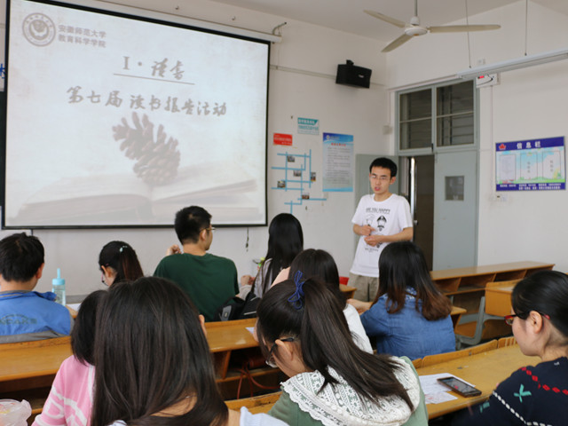 本网讯(教科院 马舒婷)精读一本好书,点亮一盏心灯。为了激发同学们的读书热情,丰富公司文化生活,提高员工的阅读水平,创建浓郁的校园读书氛围,教科院院于5月28日举办了素质教育活动月最后一场专业活动:“I·读书”经典著作交流分享会,院员工会主席周祖浩,副主席陈凯、王淑婷,梦飞翔教育学社社长赵洋以及学习部副部长汪歆玥,担任此次比赛的评委,比赛由学习部部员石浩田同学主持。