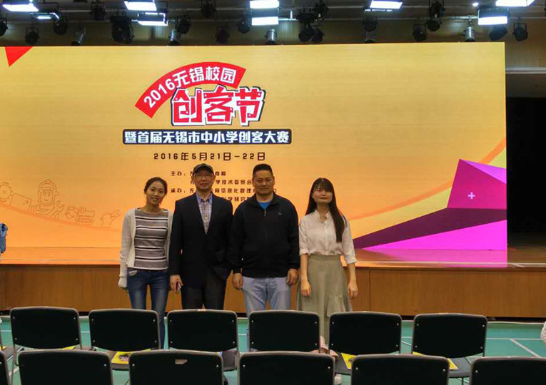 5月20日,张克松副教授一行辗转奔赴江苏省锡东高级中学,参观了在该校举行的“2016无锡校园创客节暨首届无锡市中小学创客大赛”。此次活动由无锡市教育局,无锡市科学技术协会主办,无锡市教育信息化管理服务中心、无锡市教育科学研究院,无锡市少年宫,江苏省锡东高级中学承办。来自全市的80多所中小学的800多名选手参加了比赛和展示。赛场共展示了72件创课作品,22件趣味编程作品,20件3D打印作品,36个机器人项目,300多件物联网创新设计作品。参赛选手都热情、自信地向参观者解说作品的设计理念、原理和用途。