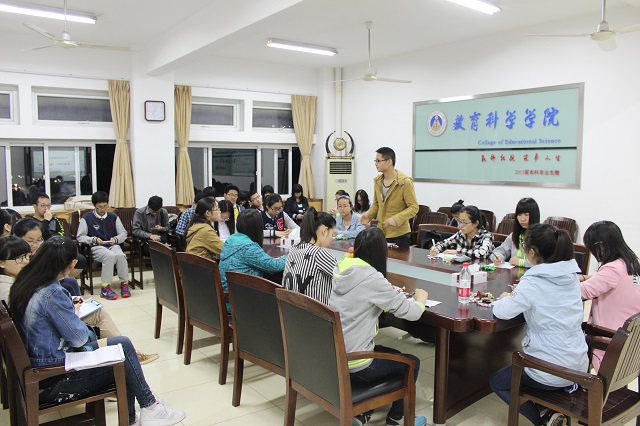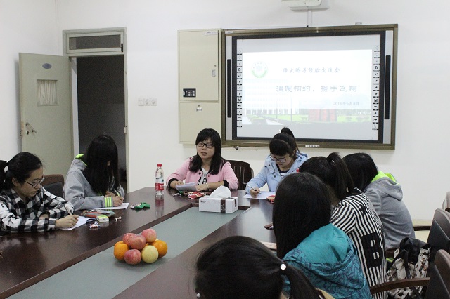 本网讯(教科院 胥仙红)为发挥优秀老员工的榜样引领作用,5月8日晚七点,2013级心理学学霸何婷和校“十佳老员工”李书婷应邀做客2015级应用心理学专业,为同学们作了一场如何做好学习生活安排的报告。2015级应用心理学的同学参与了座谈会,座谈会由心理健康委员沈施鑫主持。