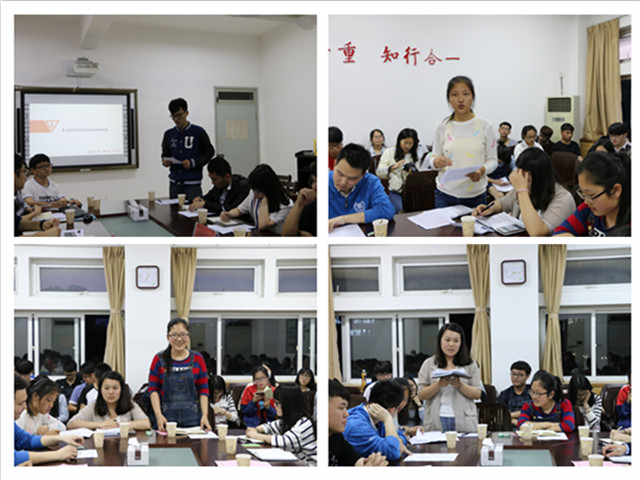 教科院员工会主席周祖皓和化材公司员工会主席党倩首先向在座老师和同学们介绍了本院的员工会工作情况,分别就部门设置,特色工作,主要业绩以及工作中发现的问题以及相应解决办法进行了主旨发言,并指出此次活动是两院增进友谊、互通有无的好机会。