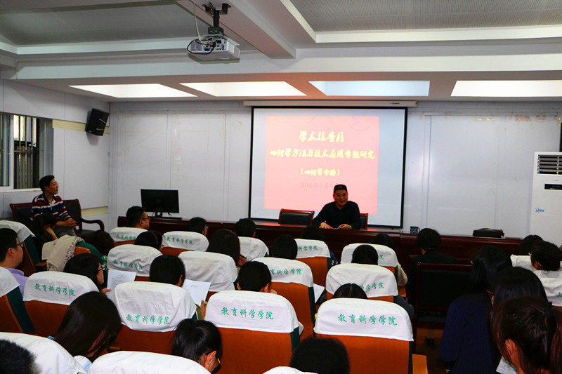 本网讯(教科院 裴扬)2016年5月4日下午,学术活动月之心理学专场“心理学方法与技术应用专题研究”学术报告会在三楼学术交流中心如期举行。经理桑青松教授、心理学系教师、研究生近百人参加了报告会,报告会由葛明贵教授主持。