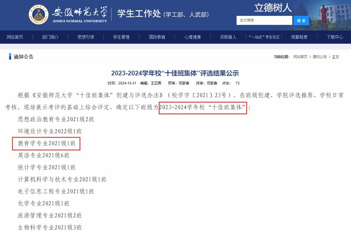 公司高度重视班集体建设,坚持开展院级“优秀班集体”评比活动,引导和鼓励教科学子追求“十佳”精神,在生活中弘扬师大人风貌,在实践中传承教育家精神,为教育强国建设贡献青春力量!