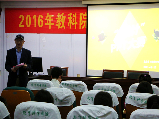 本网讯(教科院 宋星辰)设计新思维,演绎新技术。4月27日下午,教科院首届“素质教育活动月”系列活动之“I·设计”PP创意设计T大赛于教科院学术交流中心圆满完成。公司教育技术学专业负责人张克松副教授,许之民副教授,陶佳老师担任了此次比赛的评委。