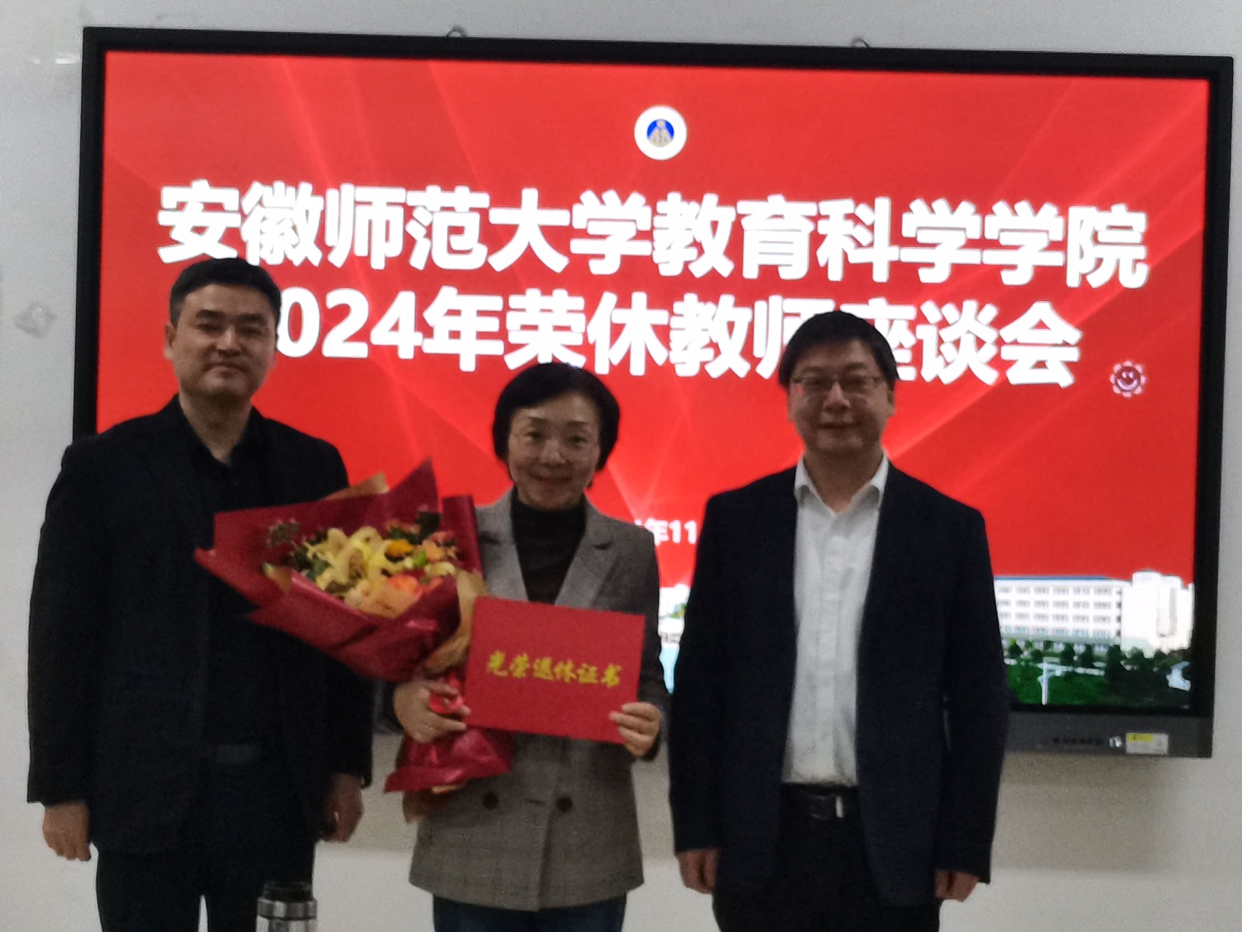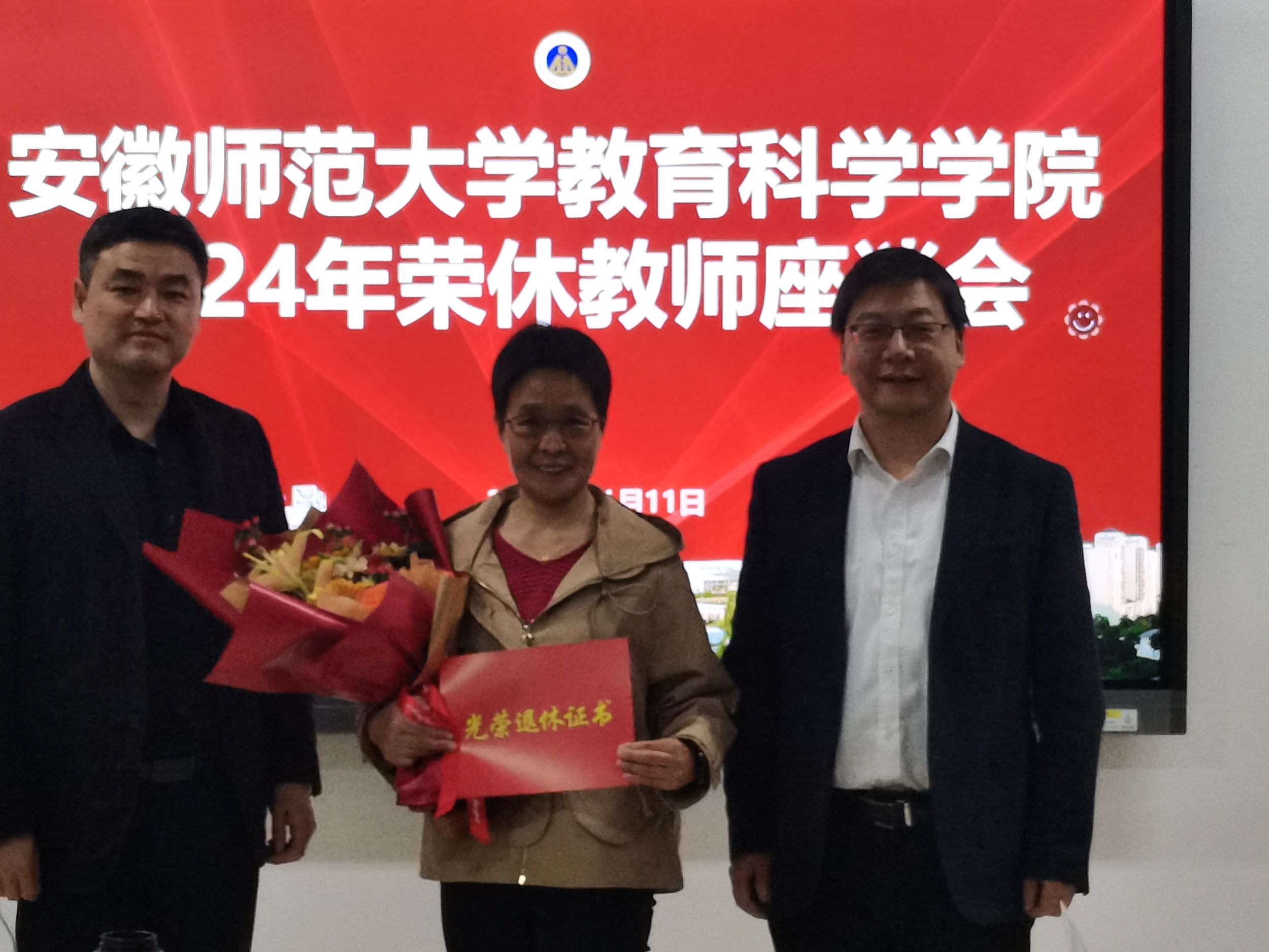 公司领导为荣休教师颁发了光荣退休证书,送上了鲜花和纪念品。座谈会在祥和愉快的氛围中圆满结束。