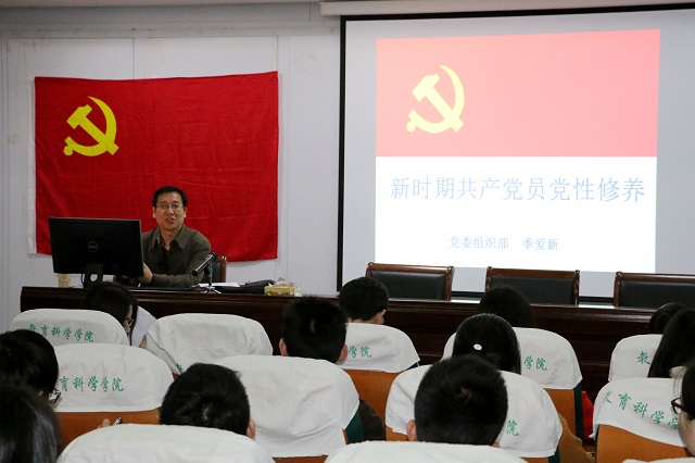 季爱新部长首先向大家介绍了党性修养的含义,为同学们能够更好地理解本期培训的内容打下基础;随后,他旁征博引、深入浅出,联系大量历史事实,重点分析了党性修养的本质内涵,幽默风趣的语言不断将现场氛围推向高潮。紧接着他结合党的成长历史以及书籍《苦难与辉煌》明确阐述党性修养是加强党员队伍建设的需要,是经受长期执政考验的需要,是面对不断改革开放的需要,受到在场学员热烈反响。最后,季部长从“学习求知为第一途径,投身实践为根本途径,党内生活为特殊途径”三者相结合对学员党性修养的提高提出要求。党课最后,季老师希望同学们要进一步坚定员工党员的理想信念,明确责任担当,坚持学以致用、学用相长,不断提高与时代发展和事业要求相适应的素质能力,努力成为一名优秀党员。