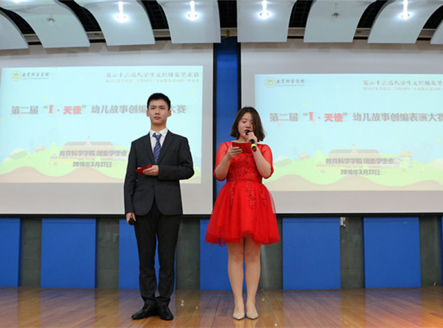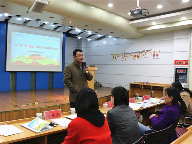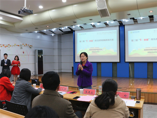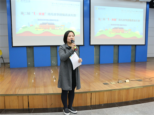 本网讯(教科院 吴素婷)故事伴随每个人的成长,故事赋予每个人生活的希望,每一个童年故事都有着一份特殊的意义。为响应校第23届老员工文化体育艺节的号召,开展富有特色的团学活动,3月27日下午,教科院第二届“I·天使”幼儿故事创编表演大赛在赭山校区就业报告厅隆重举行,与此同时,公司第十六届“育你同行·素质教育活动月”也藉此活动正式拉开帷幕。芜湖市幼儿舞蹈创编最佳编导,舞蹈家协会理事杨春燕,芜湖市附幼语言组组长笪敏,公司党委副书记张如华,学前教育专业负责人张更立、学前教育专业教授吴玲担任了此次大赛的评委。各年级学前教育专业员工以及其它专业的部分员工共同观摩了此次比赛。