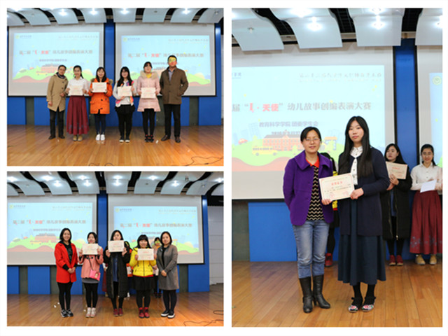 本次大赛形式别出心裁,内容形式各异,经过前期的选拔与复赛,共有8件作品进入到最终的决赛。《黑心公主》讲述了一位品行恶劣的公主重新获得大家关心的故事强调了与人为善的重要性,而15级学前教育的同学用《狐狸的放大镜》告诉大家做人不能只看到别人的缺点,《小兔子,我知道》也给不喜欢听父母唠叨的同学们上了一课,《月亮的味道》则让在场观众体会到了团结的力量。由14级学前教育专业的同学带来的中场幼儿舞蹈也赢得了大家热烈的掌声。