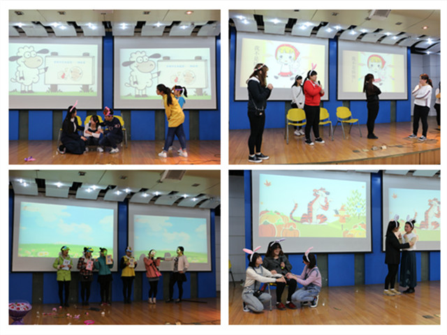 下半场表演中,《袜子里的可乐》借助配音的形式向大家讲述了爱喝可乐的洛洛的故事;《兔耳朵妹妹》赋予兔子的耳朵生命教育了孩子们友谊的真谛;《羊村气象台》通过诉说小动物们的互相帮助的故事展现了协作的魅力;最后一个节目《家在哪幸福就在哪》更是让大家感受到了家的温暖。在激动人心的互动问答环节,多个学前教育专业的理论知识吸引在座的同学们抢答,在赢得精美小礼品的同时更增长了同学们的专业知识。