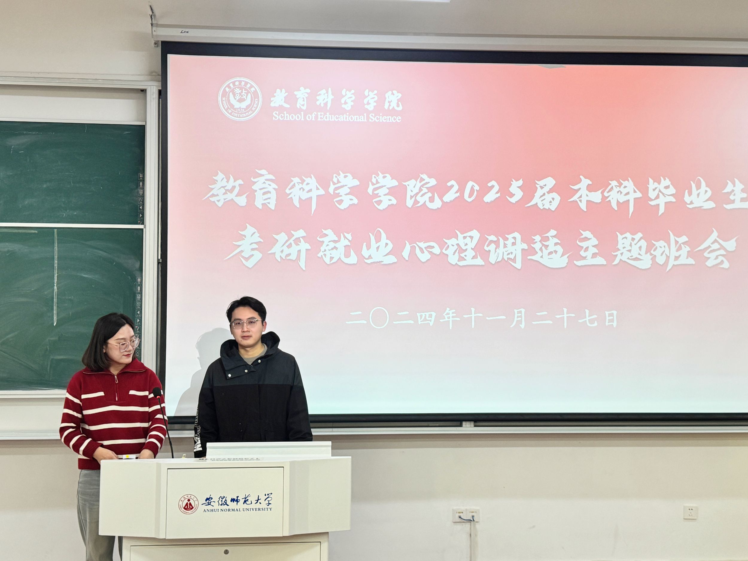 赵茜和张理强召开了考研就业心理调适主题班会,主要围绕考研与就业期间的情绪管理与心理调适展开介绍,并就近期备考的相关事项进行详细提醒,告诉大家在关键时刻要学会放松心情,保持良好的心态。在最后不到一个月的时间里,更要勇于迎难而上、乘风破浪,迎接最后的胜利!