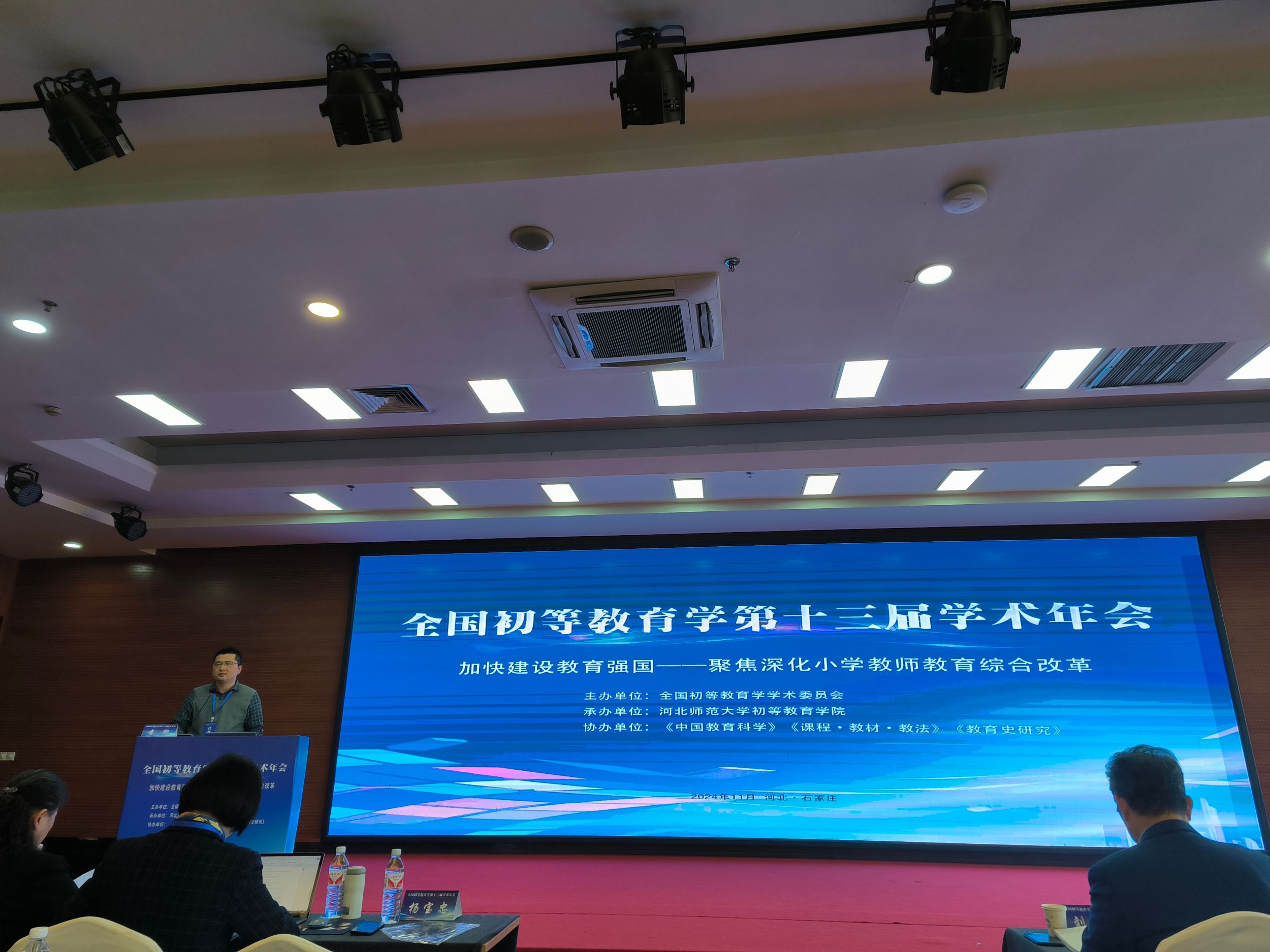 2024年11月29日-12月1日,全国初等教育学第十三届学术年会在河北石家庄召开。本次年会以“加快建设教育强国——聚焦深化小学教师教育综合改革”为主题,由全国初等教育学学术委员会主办,河北师范大学初等教育公司承办,《中国教育科学》《课程·教材·教法》《教育史研究》等期刊协办。教科院阮成武教授、李卯副教授、陈元龙博士出席参加本次学术年会。