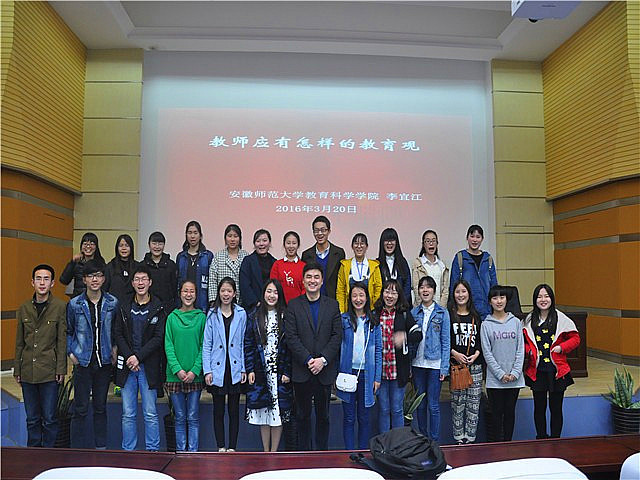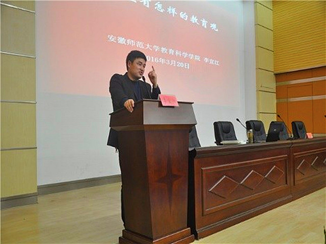 本网讯(教科院 “梦飞翔”教育学社)教育是点化人生的大事。为了使同学们对教育有更全面的认识,“梦飞翔”教育学社于3月20日晚在赭山校区科技礼堂举办了“教育漫话”的第三场讲座。本次讲座的主讲人是教科院李宜江教授。当晚全校200多名员工共同聆听了李教授的“教师应有怎样的教育观”的主题讲座,一起探讨教师应有怎样的教育观的问题。本次讲座由社团理事涂珍臻同学主持。