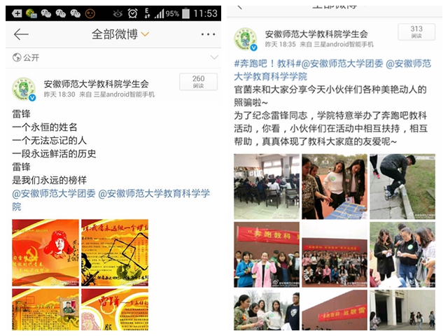 除展板宣传外,公司团委员工会也通过微博平台加强线上互动,不仅展示了近期公司开展的各项“雷锋日”主题活动,还与广大师生互动交流,此项活动受到了大家的热烈追捧,同学们参与活动、热议雷锋,共享雷锋文化,传承雷锋精神。