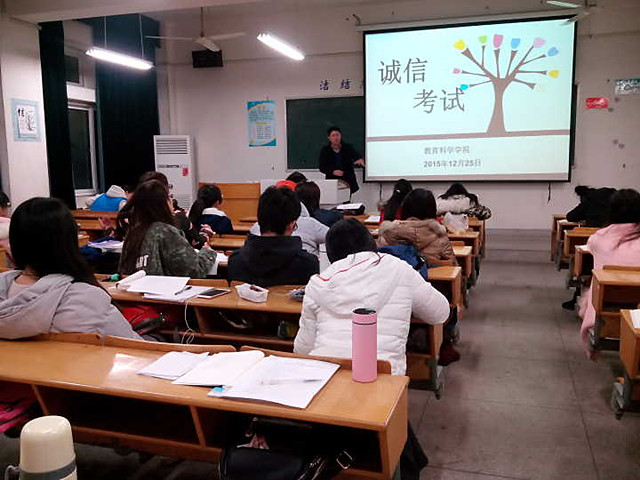 教科院为号召全校师生诚信考试,制作了以“严肃考风考纪,共创良好学风”为主题的宣传展板,展出当天吸引了不少同学驻足观看。在教科院楼下的电子显示屏也播出了关于诚信考试有关的标语,有些严谨规范,有些妙趣横生却意味深长。在欣赏展板、品味标语之余,同学们更加体会到了诚信考试的重要性。随着展板的展出,本次诚信考试的教育宣传活动也画下了句号,但是诚信之根却在同学们心中越扎越深。