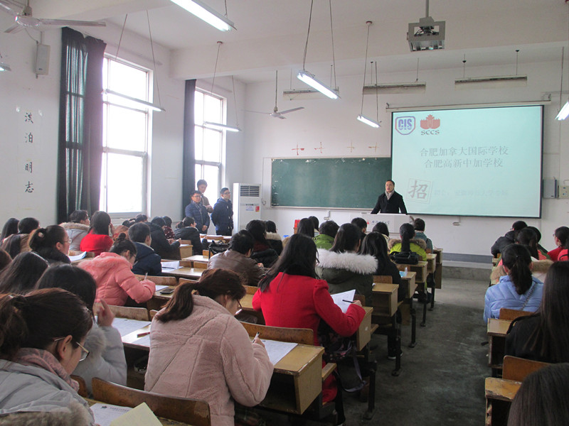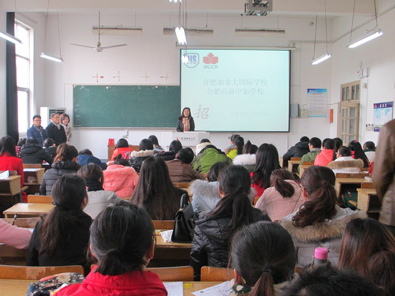 招聘会初始,合肥高新中加公司的吴董事长针对本公司的办校理念、发展规模、未来展望等多个方面作了详细介绍。吴董事长说道:“合肥高新中加公司在全国共有11所分校,基础设施一流,此次招聘的目的在于为公司的快速发展注入新活力。一流的公司加上一流大学输入的一流员工,我们相信公司的未来会更美好!”随后,该公司的陈主任通过播放精彩的宣传片,向广大同学介绍了集团的具体情况,特别强调了该校实行的是素质教育,无应试压力,使同学们对合肥高新中加公司有了一个更深的了解。招聘会接近尾声,该校的领导老师针对在场同学求职关注的问题进行了一一解答,同学们也表示极大的热情,对自己心仪的岗位投上了简历。