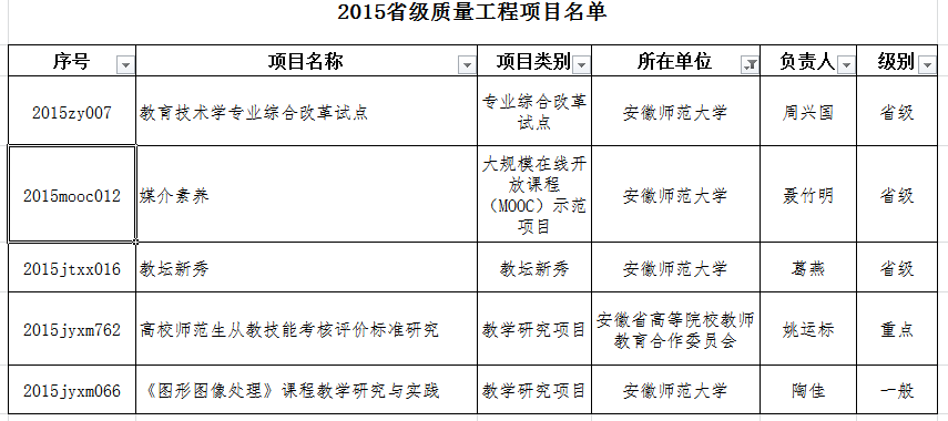 本网讯(教科院 黄引娣)在公司的精心组织和广大教师的积极参与、申报及共同努力下,公司2015年省级“质量工程”项目申报工作取得了可喜的成绩,这些项目分别是:专业综合改革试点1个、大规模在线开放课程(MOOC)示范项目1项、教研项目2项、教坛新秀奖1个。实施质量工程是提高教学质量的重要手段,是当前和今后一段时期教学工作的重点,各位老师应将此作为契机,进一步深化本科教学改革工作,加强建设成果的宣传推广和应用,充分发挥项目的示范作用。