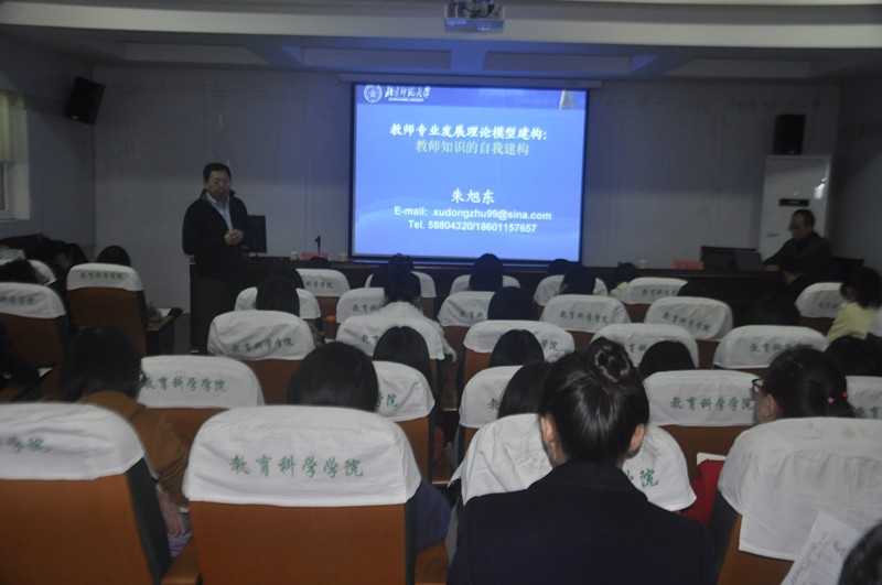 本网讯(教科院 秦琼)11月21日上午,教育部人文社科重点研究基地北京师范大学教师教育研究中心主任、教育学部副部长、博士生导师朱旭东教授在公司三楼学术交流中心做了题为《教师专业发展理论模型构建:教师知识的自我建构》的学术报告,报告由教授委员会主任周兴国教授主持,公司部分老师及教育学类的研究生和本科生参加了本次学术交流报告。