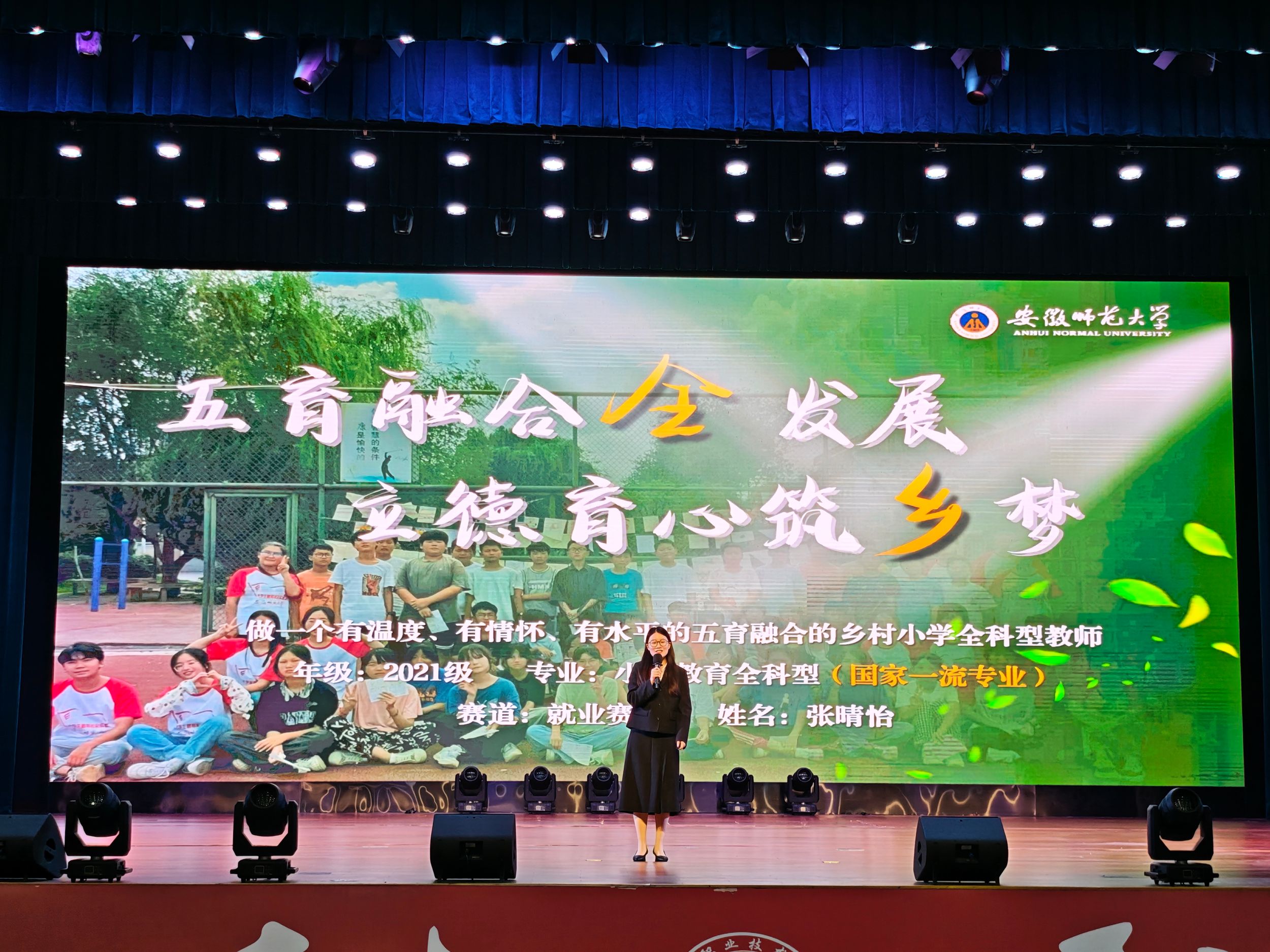回望过去,张晴怡十分感谢师大提供的脚踏实地的奋斗热土与仰望星空的宇宙苍穹。公司“厚德、重教、博学、笃行”的校训,以及公司“学思并重,知行合一”的院训是她过去四年的求学底色,也是她未来拔节成长的学术理想。作为一名小学教育定向培养师范生,她将在不久的九月走上讲台,秉承着教育家精神,努力争做“四有好老师”,为安徽省基础教育事业发展贡献自己的青春力量。