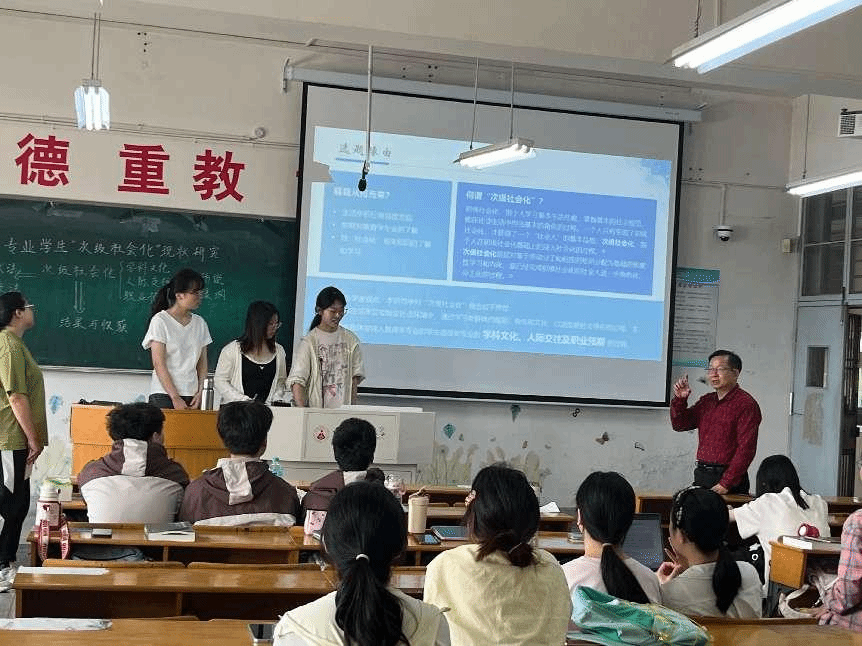 第二组成员作了《转专业员工"次级社会化"现状研究》的学术汇报。该组从学科文化、人际交往和职业预期三个维度,详细阐述了转专业员工的"次级社会化过程"。针对现场同学提出的抽样策略和研究对象界定问题,小组成员进行了回应。徐红教授随后深入解析了抽样方法,并重申了质性研究的规范原则。