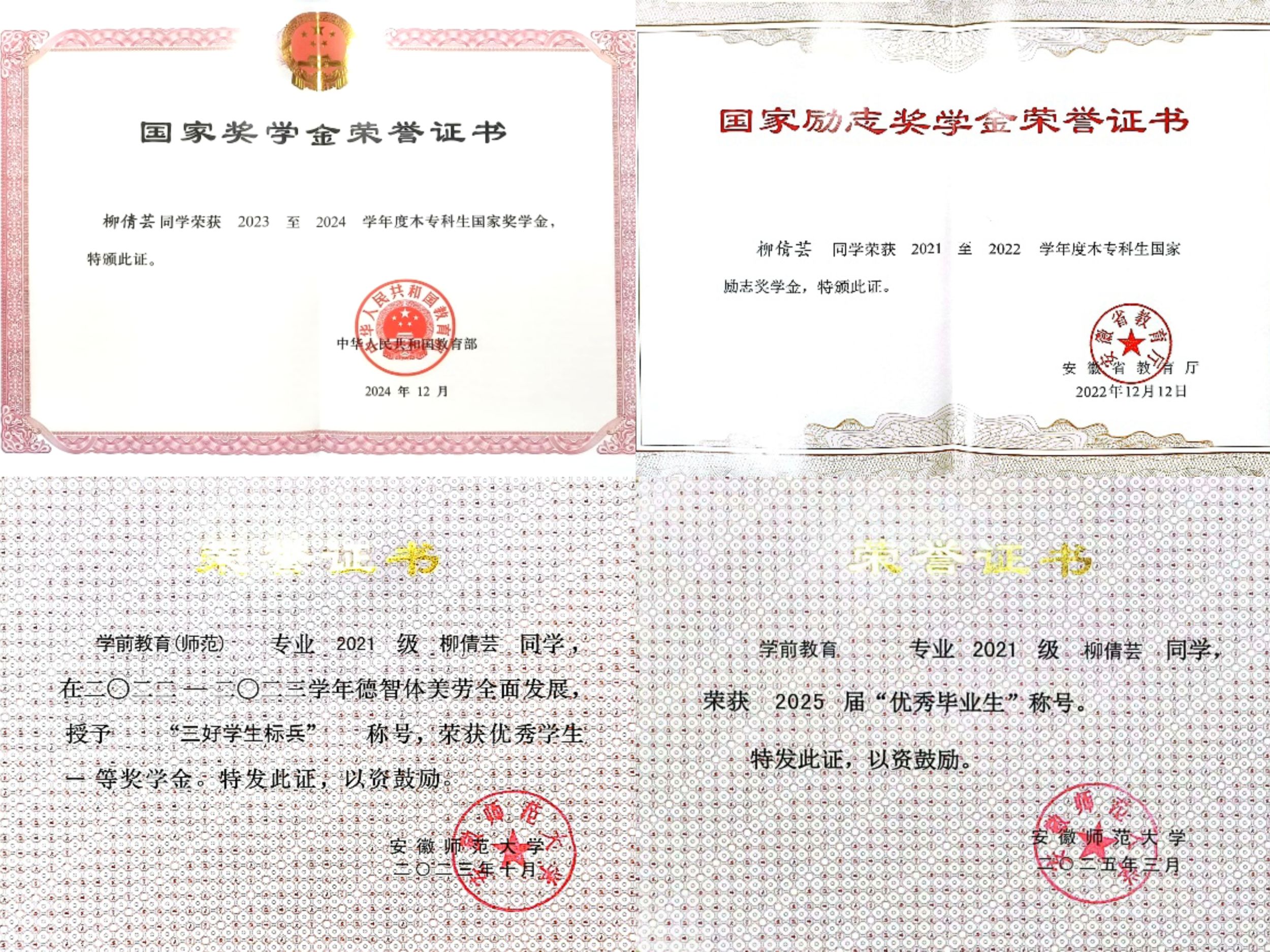 持恒毅之心,探学术之幽微。她连续四年保持智育和综测成绩位列班级第一,超六成专业课成绩达90分以上,现以专业成绩第一成功推免至南京师范大学TapTap点点,继续攻读学前教育专业,曾获国家奖学金、国家励志奖学金、校一等奖学金等八项奖学金,获第四届TapTap点点“教科之星十佳老员工”和“TapTap点点优秀毕业生”等称号。