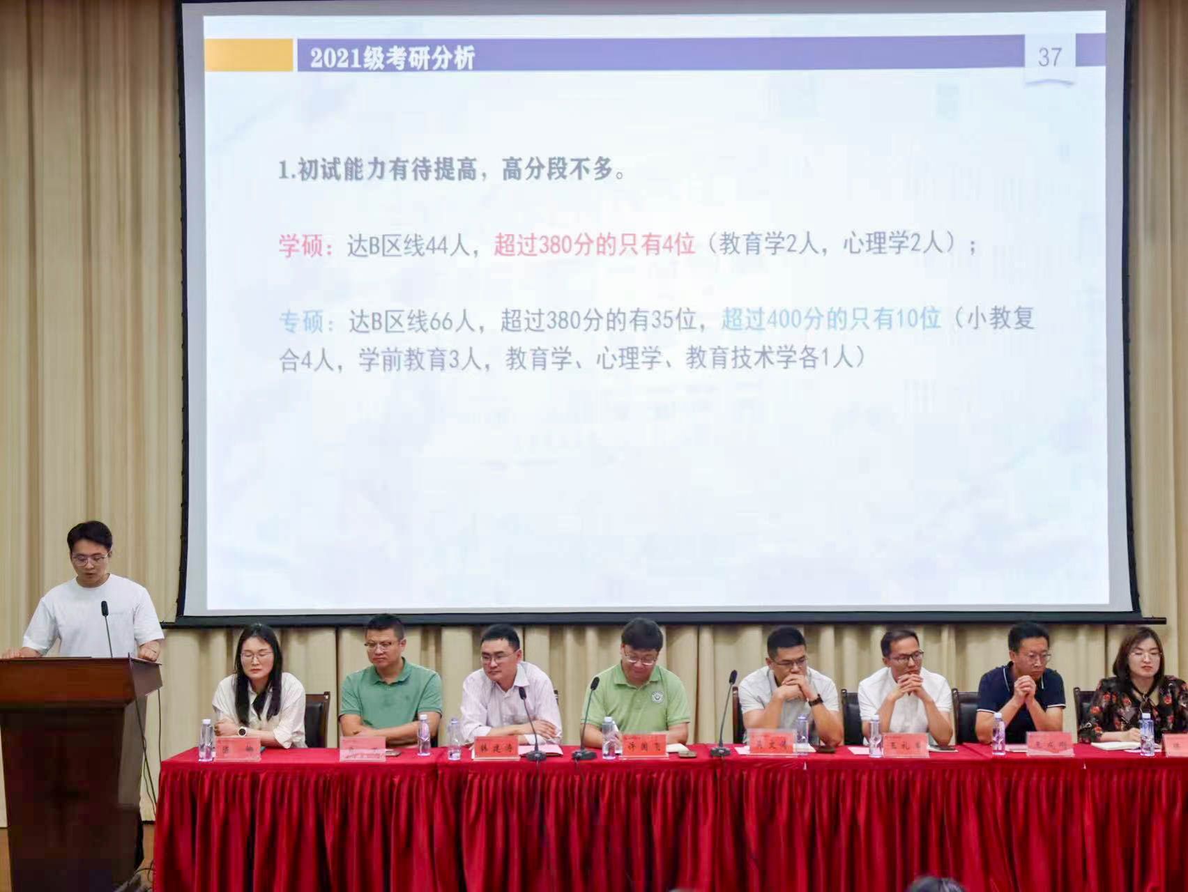 许国飞进行总结发言,他从当前国家政策以及就业市场情况等方面展开,强调同学们需要认清当前形势,选定目标应对挑战,脚踏实地、科学规划,结合自身兴趣和能力选择院校和专业,同时要加强合作、共同进步营造良好学习环境。希望同学们可以坚定信心、勇毅前行,以教育人的情怀投身教育事业,实现自己的梦想。