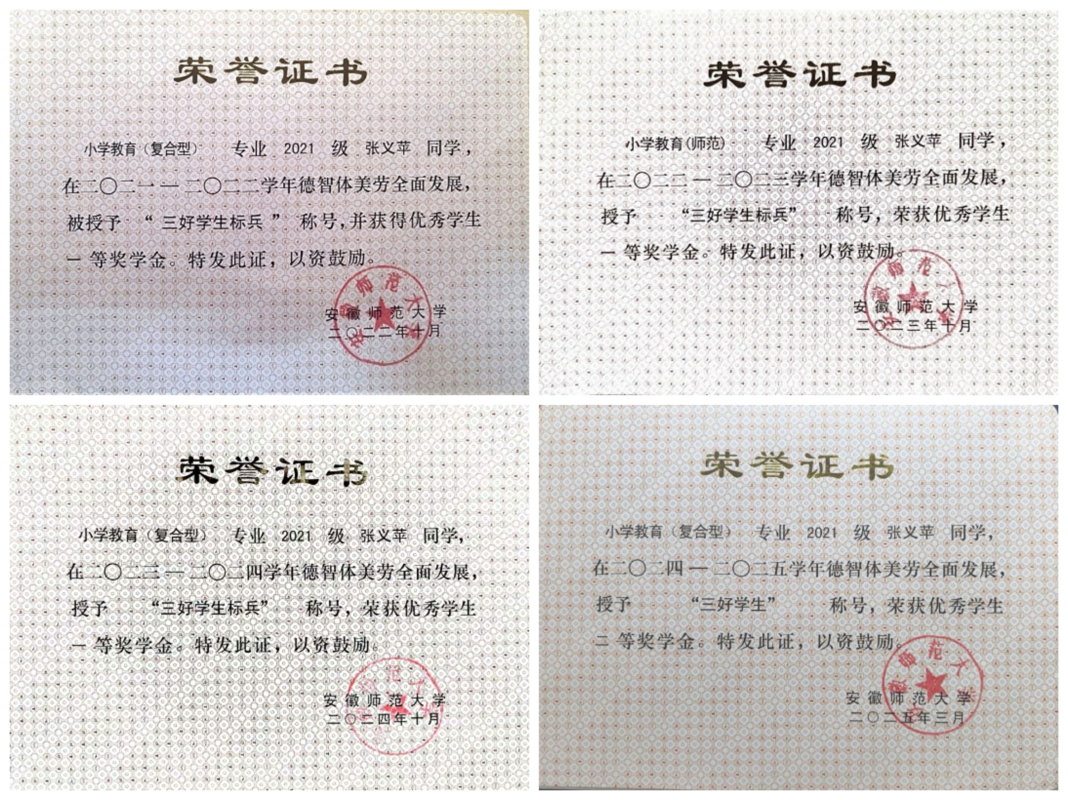 在专业学习道路上,她始终秉持“路漫漫其修远兮,吾将上下而求索”的信念,在大一下以智育第一、综测第一以及分流考核第一的成绩进入了小学教育复合型专业。四年来,她脚踏实地,60门课程取得90分及以上,连续三年获国家励志奖学金,获三次校优秀一等奖学金及一次二等奖奖学金。四年综测平均分超92分,居专业榜首,这份坚持也让她最终保研至华东师范大学教育史专业。她始终认为学无止境,求学之路从未真正抵达终点,在这条道路上唯有不断求索才能去往更辽阔的旷野。