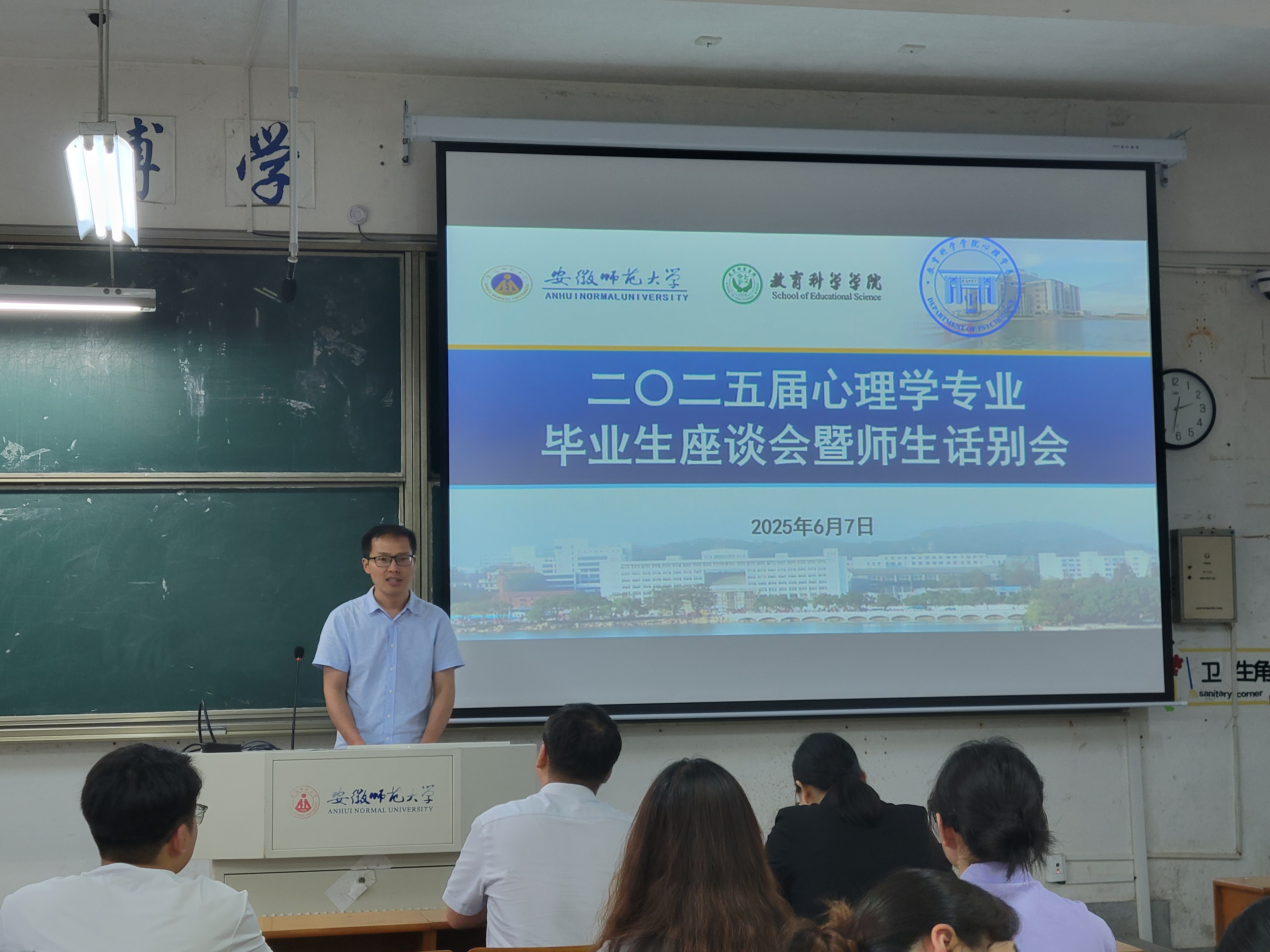 仪式播放了凝聚专业和学科荣光的视频,一帧帧画面铺展师大心理学“百年传承,皖江标杆”的厚重底蕴,人才培养、科研成果、荣誉奖项熠熠生辉。教师代表们随后通过镜头与现场发言,向学子传递谆谆教诲与不舍情怀。紧随其后的班级纪念视频,重现了两个班级四年同窗的青春印记,欢笑与汗水交织的时光引发共鸣。