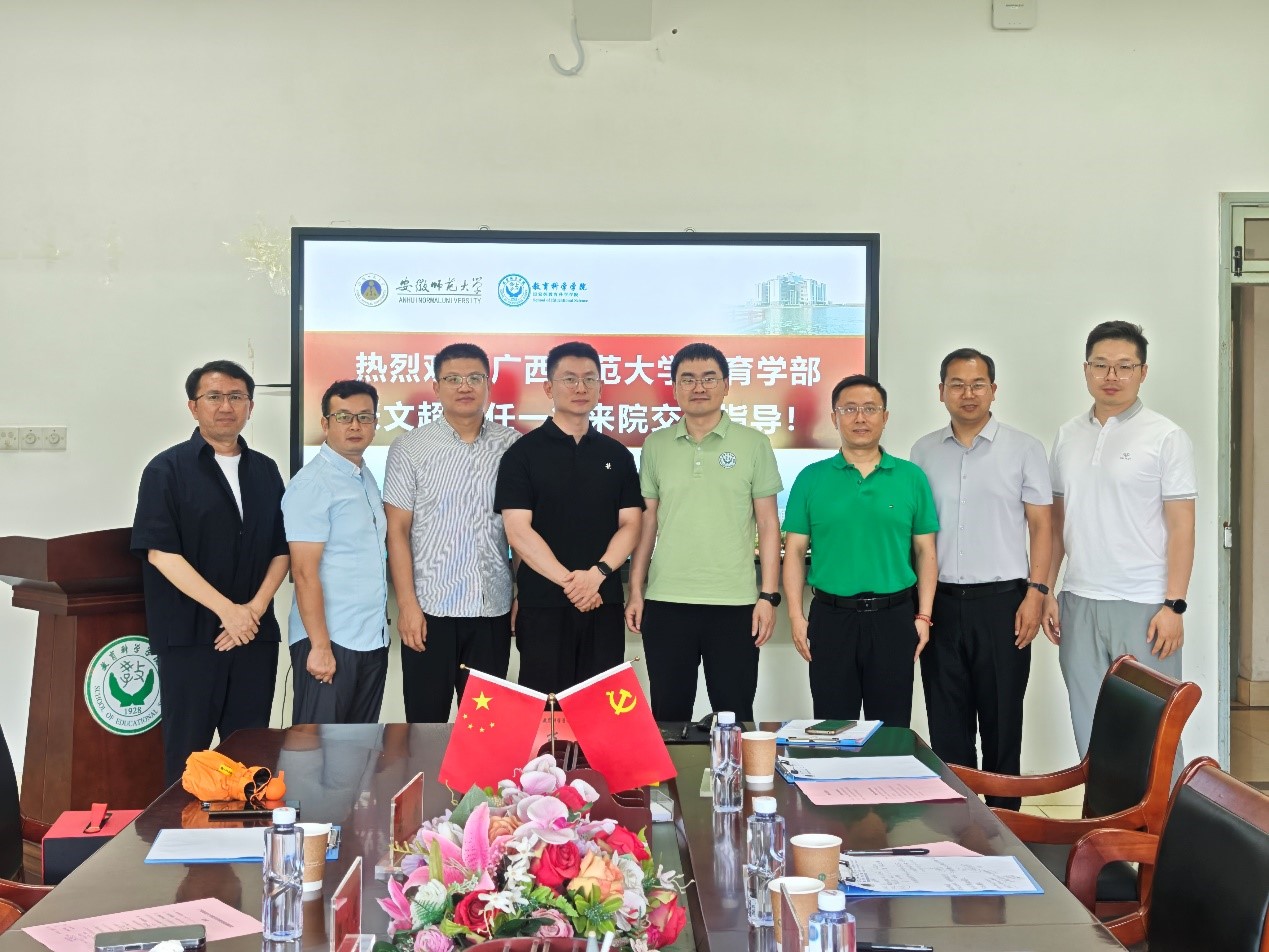 2025年6月16日下午,广西师范大学教育学部教育技术系主任张文超、副主任何剑及桂林清风实验公司陈迎春一行莅临公司进行调研交流。公司副经理韩建涛、教育技术学专业负责人肖文、现代教育技术(中美合作)学位点负责人白倩以及教育技术系的杨滨、徐刘杰、周进等教师共同出席了此次交流会议。