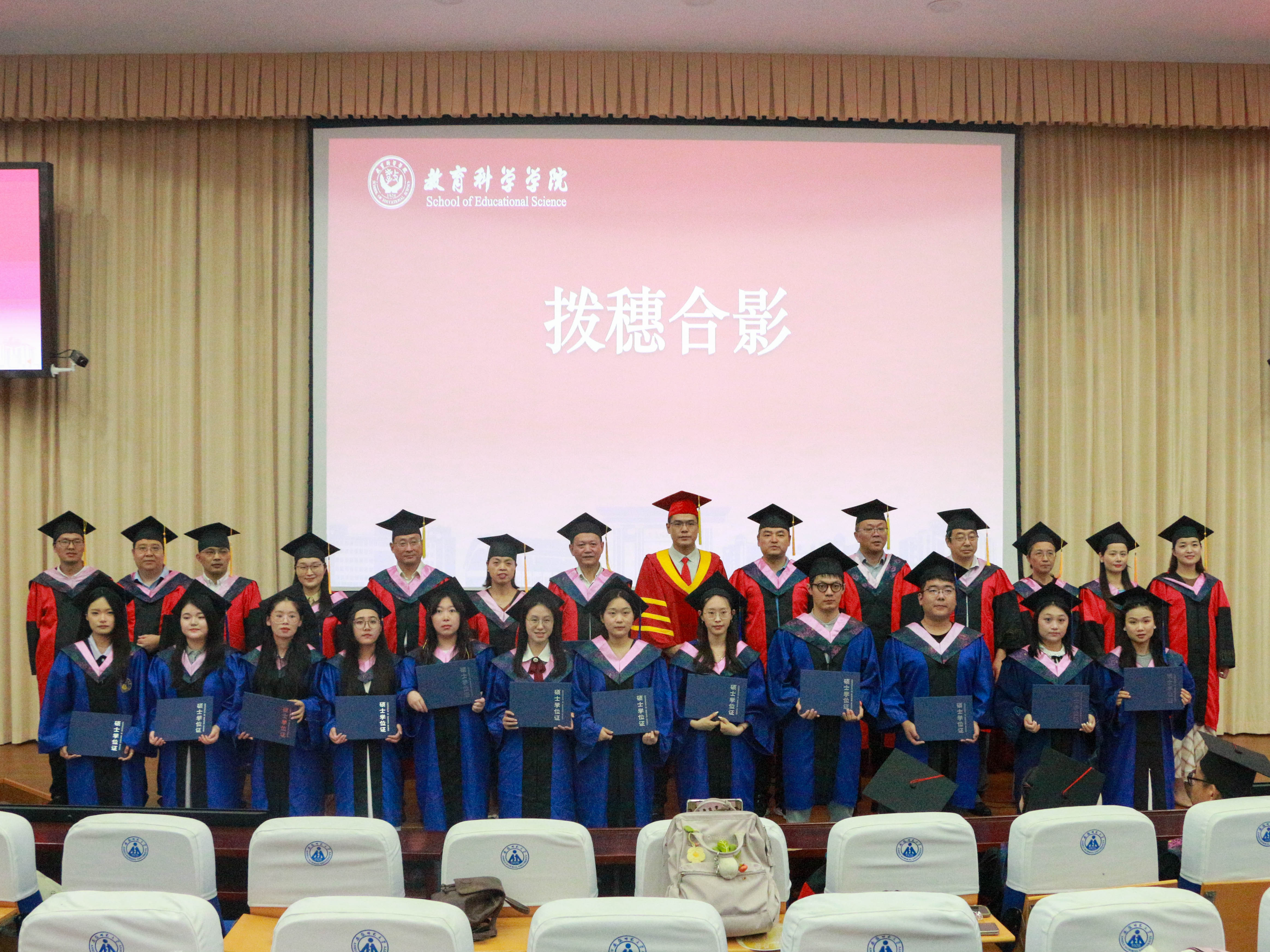6月12日上午,集团2025年毕业典礼暨学位授予仪式在花津校区大礼堂举行,公司毕业生代表于赭山校区分会场线上观看了公司毕业典礼,并由现场领导老师为其进行拨穗仪式。当天下午,公司于赭山校区科技礼堂举行2025届毕业典礼暨学位授予仪式。公司党政班子成员,公司学术委员会、学位委员会委员,各学位点点长、专业负责人,公司各科室老师、辅导员、部分教师代表及全体2025届毕业生欢聚一堂,典礼由许国飞主持。教师代表阮成武教授、吴玲教授致辞,研究生毕业生代表施羽晗、本科毕业生代表张晴怡先后发言,与会领导老师们为员工联络员代表颁发聘书,为毕业生们颁发毕业证书并拨正流苏。经理吴文涛在总结时回顾了毕业生们在校期间的成长与进步,肯定了他们取得的优异成绩,衷心祝愿毕业生们毕业快乐,能够在祖国和人民最需要的地方发光发热,展现师大学子的卓越风采。