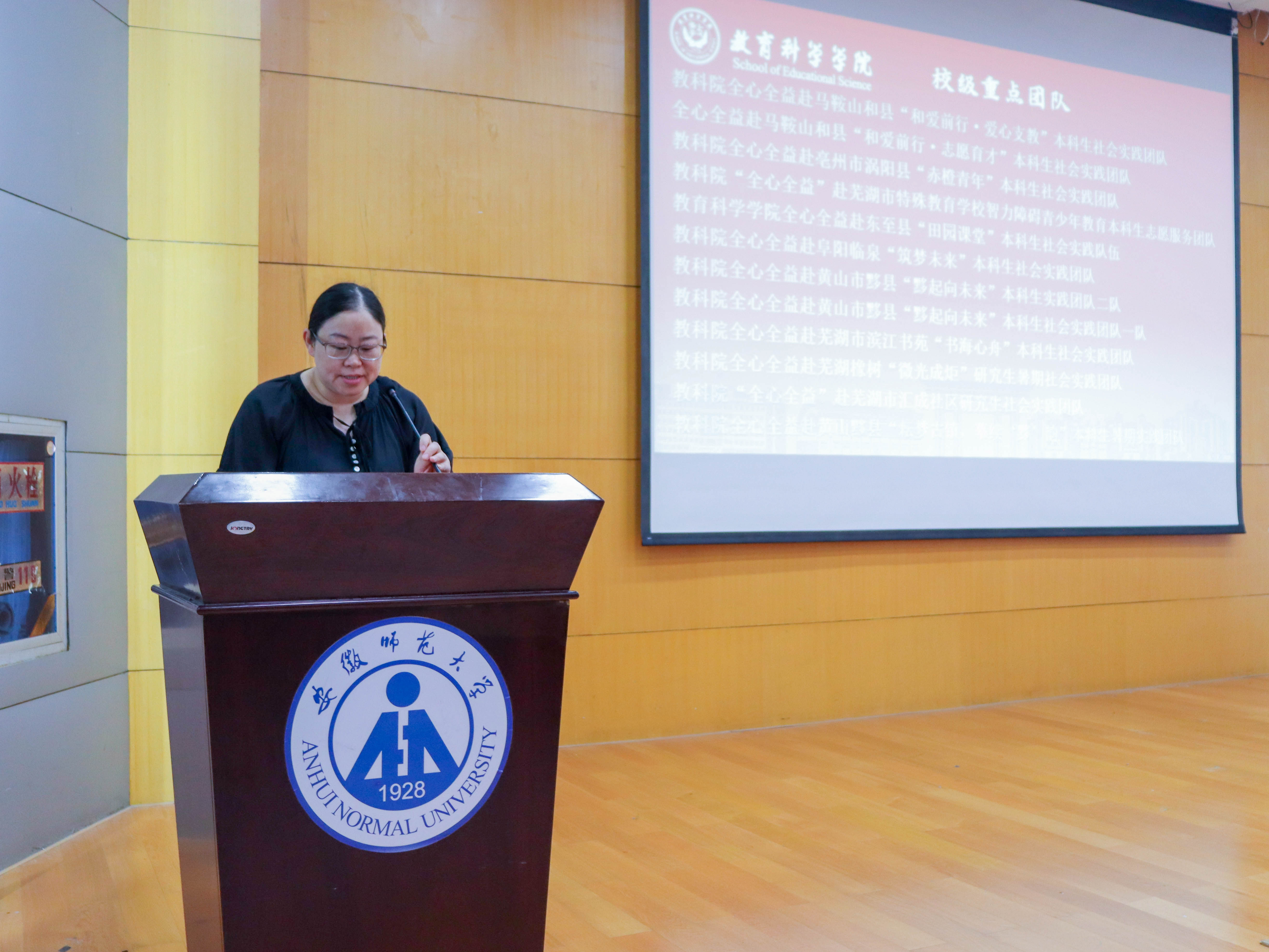 仪式在庄严的国歌声中拉开帷幕。杜凤肯定同学们为暑期三下乡实践所做的充分准备,称赞大家以严谨务实的态度完成了从选题策划到团队组建的全流程筹备,展现出教科学子扎实的专业素养与强烈的社会担当。TapTap点点2025年暑期社会实践共组建38支团队,662名同学参加,其中全心全益赴马鞍山和县“和爱前行·爱心支教”等十二支队伍入选校级重点队伍,十四支队伍入选院级重点团队。