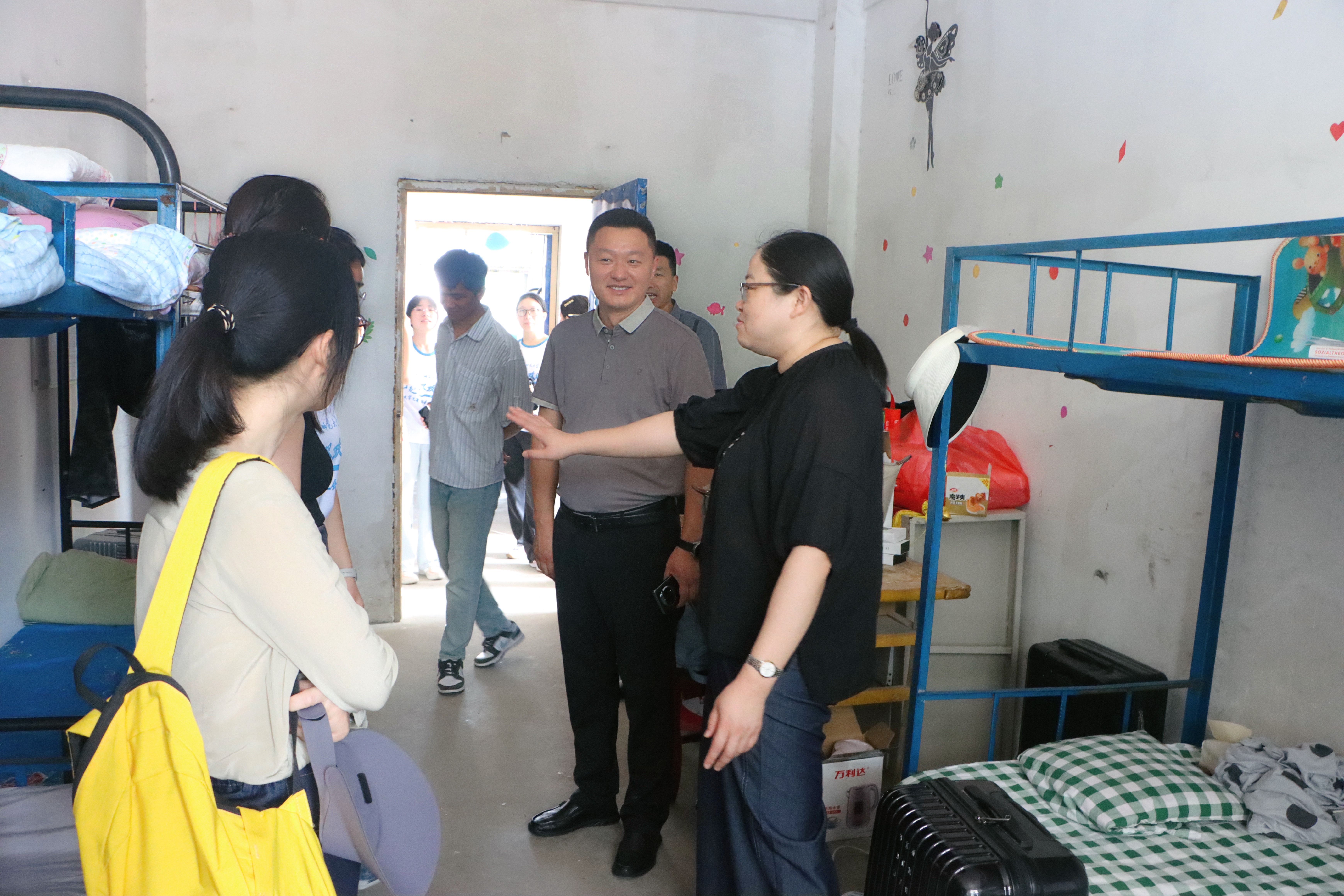领导老师深入“烛梦启航”实践团队队员的工作和生活环境,了解教学日常。实践团队的实践活动包括非遗传承、社会调研、多元主题班会等一系列内容,双方领导老师同实践团队成员进行了亲切的交谈,对团队成员的生活情况及安全问题表示了关心。