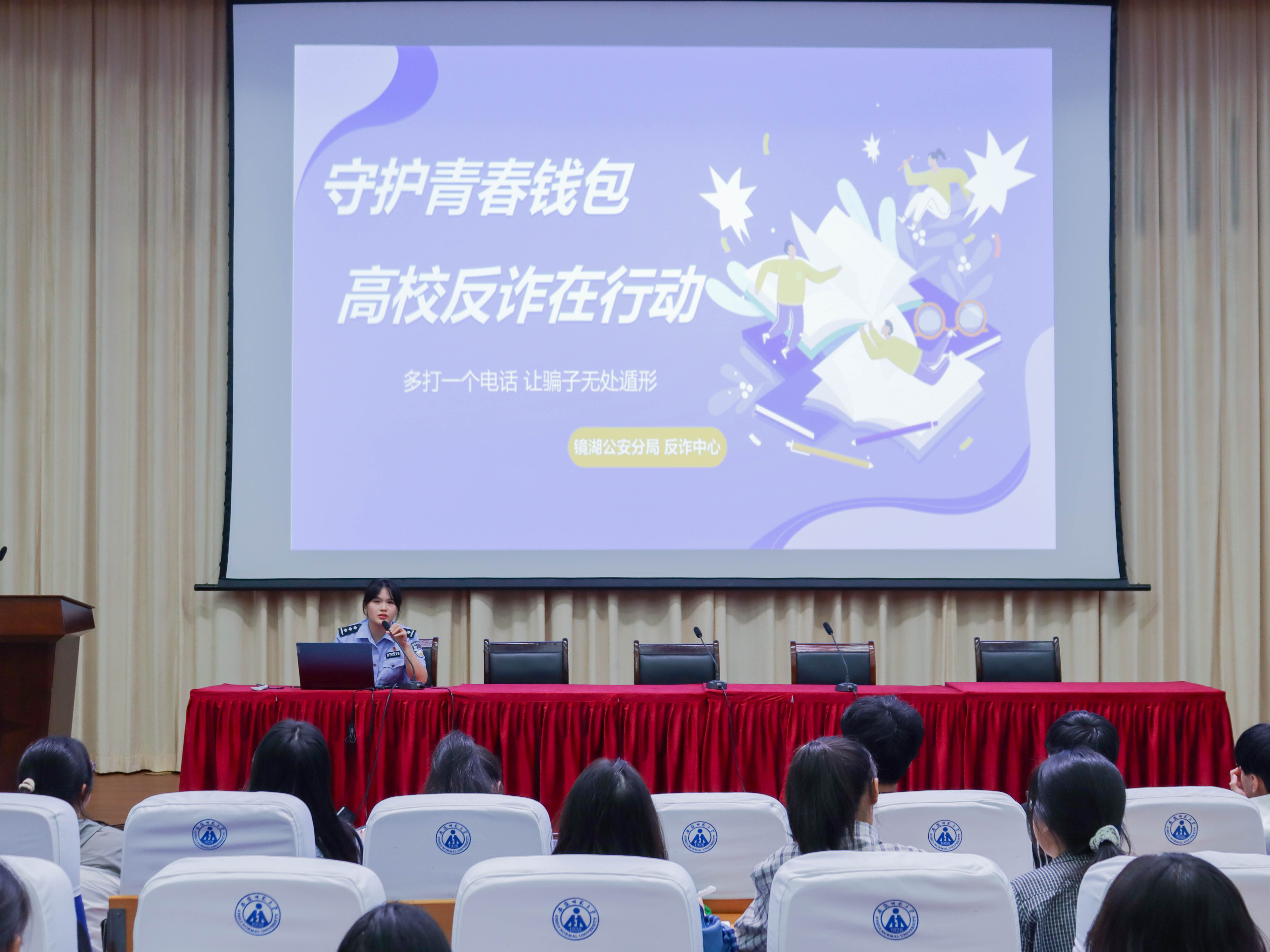 警校联动,反诈宣讲入脑入心。公司特邀镜湖公安分局反诈中心陈思思警官开展“守护青春钱包,高校反诈在行动”专题讲座。陈思思以高校真实案例为切入点,深入剖析了常见诈骗手段与防范要点,重点讲解了“不轻信、不透露、不转账”的“三不原则”,并现场指导新生安装“国家反诈中心”APP,开启来电预警功能,切实提升新生的网络安全防护能力。