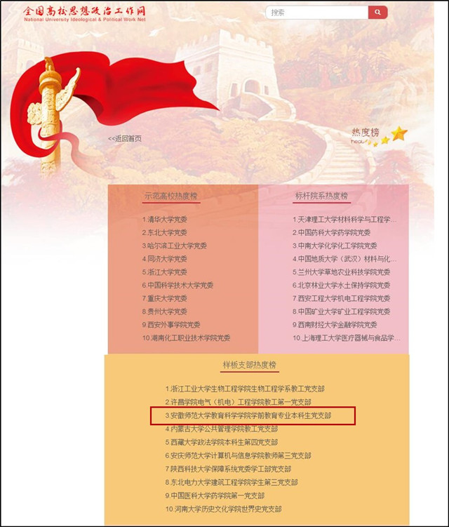 本网讯(教科院曹玲玲)2019年6月5日,在全国高校思政工作网“样板支部热度榜”最新排名中,学前教育本科生党支部取得了全国第三,员工支部第一的优异成绩。这既离不开支部半年多来的精心设计和系统规划,更离不开严格的过程监督和质量保障。