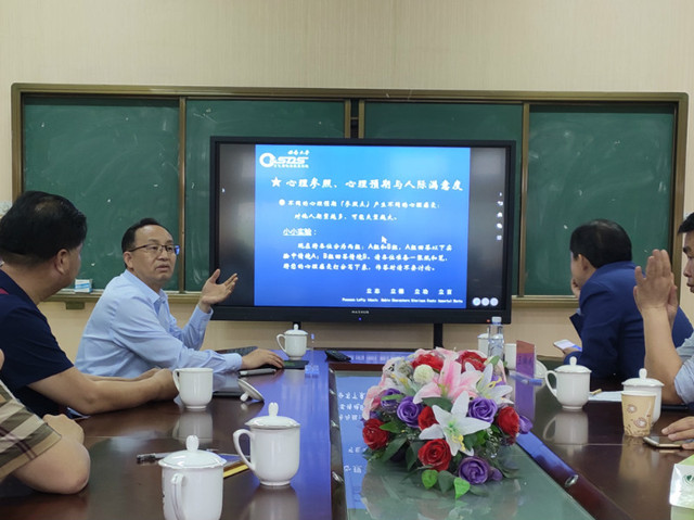 本网讯(文/孙益颍图/张威威)5月25日下午,西南大学文化与社会发展公司经理、博士生导师潘孝富教授应邀做客文津论坛,在公司408会议室做了题为“人际交往中的心理策略——基于经济心理的视角”的报告。讲座由经理桑青松主持,公司心理学相关专业教师和研究生到场聆听。