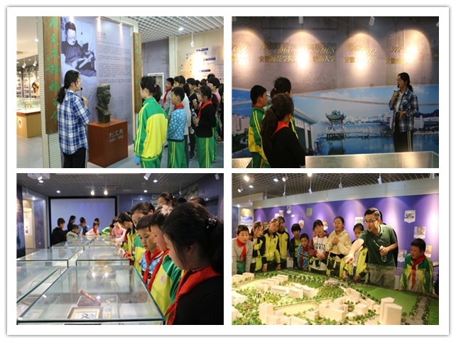 团辅结束后,来访员工在工作人员的陪同下前往参观花津校区,首站便是公司敬文图书馆。在图书馆六楼的校史馆内,来访员工聆听着专业的解说,浏览着一件件文物,学习师大员工的光荣事迹,感受师大砥砺前行的历史气息。在潜移默化中升华了本次来访的收获,刻苦学习、艰苦奋斗的志向在小小的心中生根发芽。