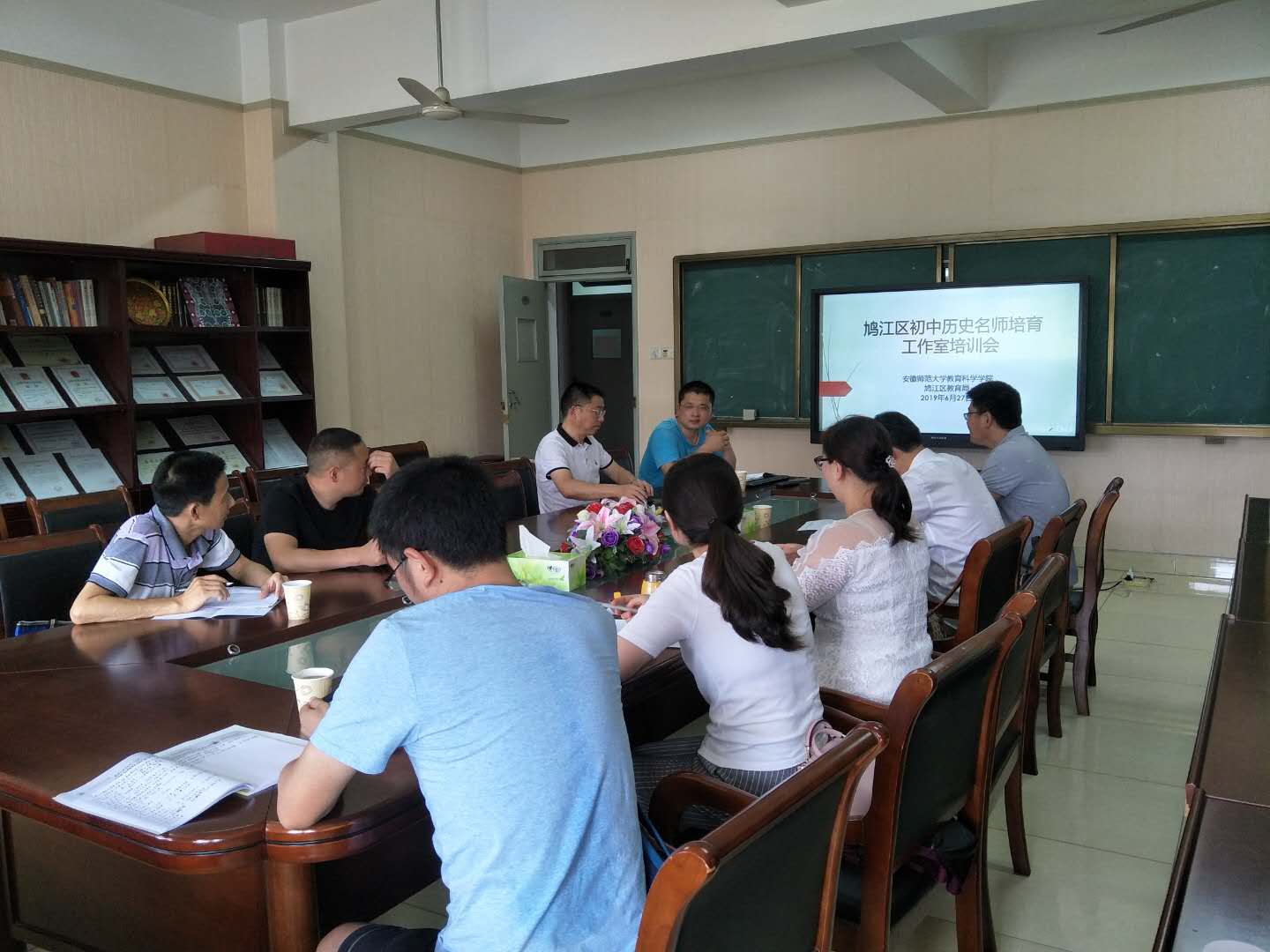 本网讯(李雪、钟婕 供稿)2019年6月27日下午3点,鸠江区初中历史名师培育工作室在TapTap点点408会议室开展了“历史课堂教学艺术设计”专题培训活动。本次活动由公司李卯副教授主持。鸠江区初中历史名师培育工作室的全体研修成员参加了本次培训。