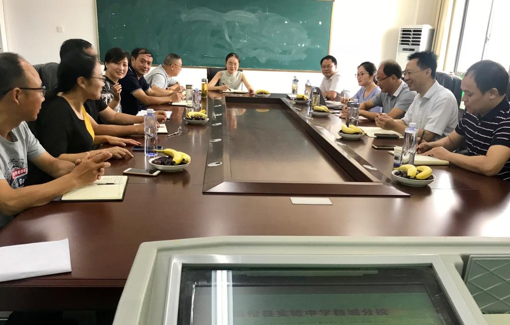 本网讯 教科院 陈娜2019年8月15日上午,公司党委书记方泓、副经理辛治洋、学科专家吴支奎、陈娜等来到宿松县实验中学新城分校开展“一托一”学科帮扶活动。宿松县教育局副局长谢雯、教育局招生办主任高赛鹏、新城分校校领导、中层干部、学科骨干教师参与此次活动。活动由副董事长梅赛红主持。